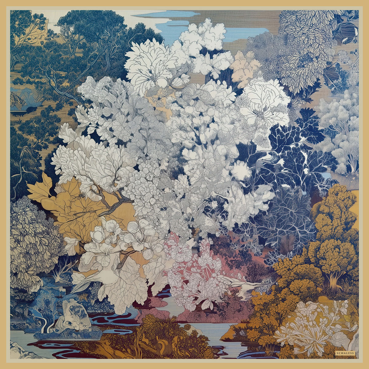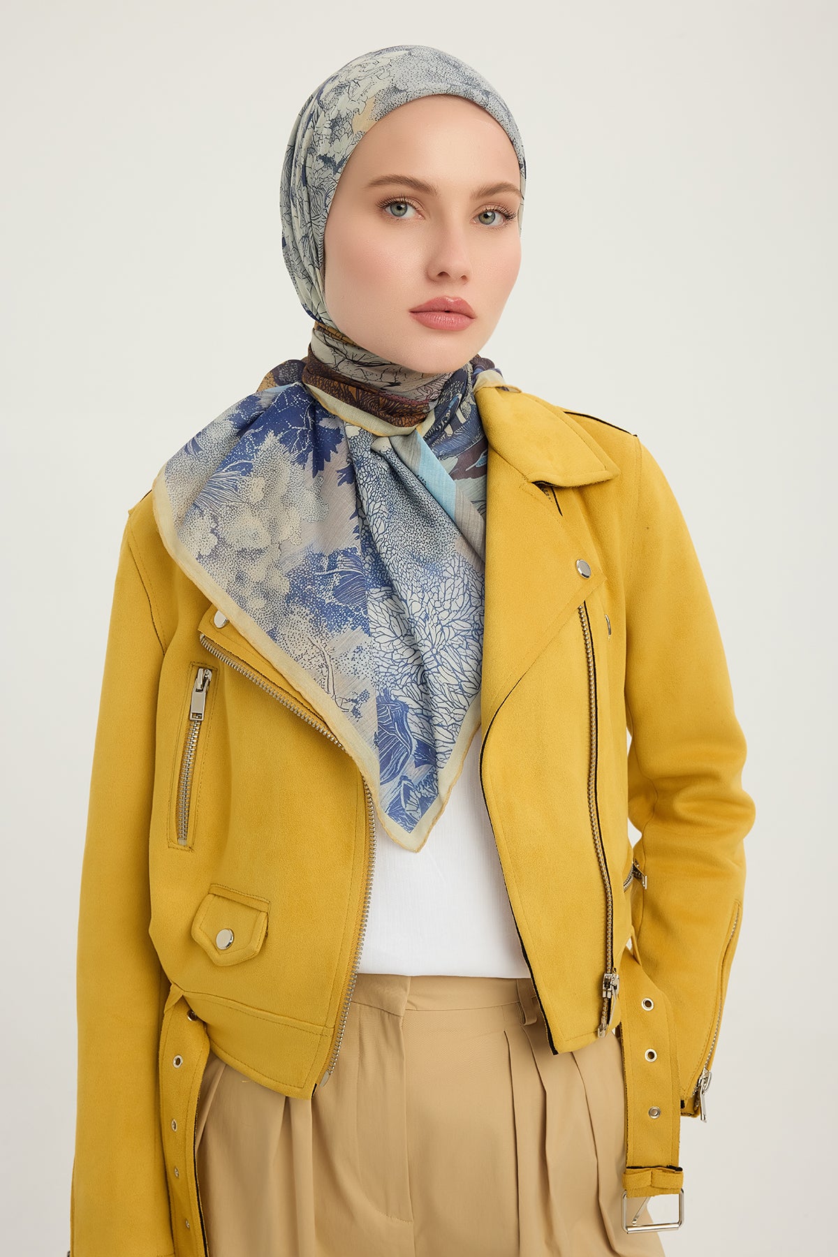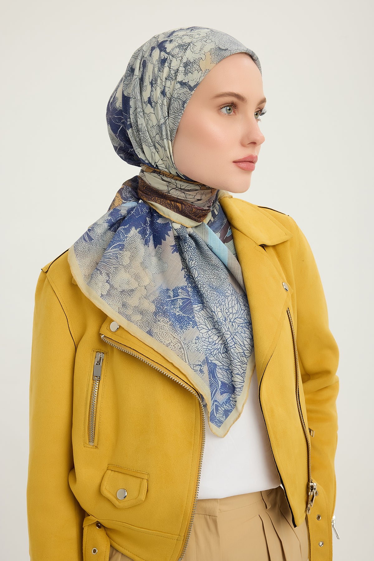 Efilia Desenli Eşarp Sessiz Mevsimler Mavi