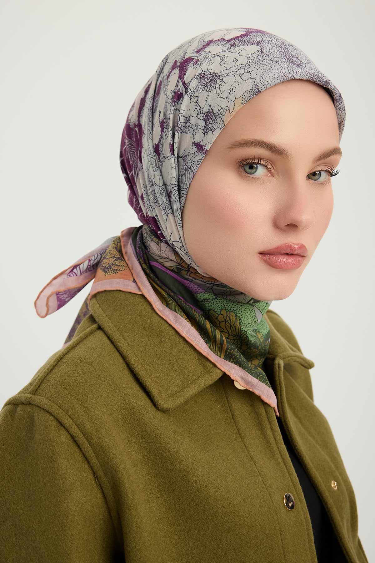 Efilia Desenli Eşarp Sessiz Mevsimler Mor