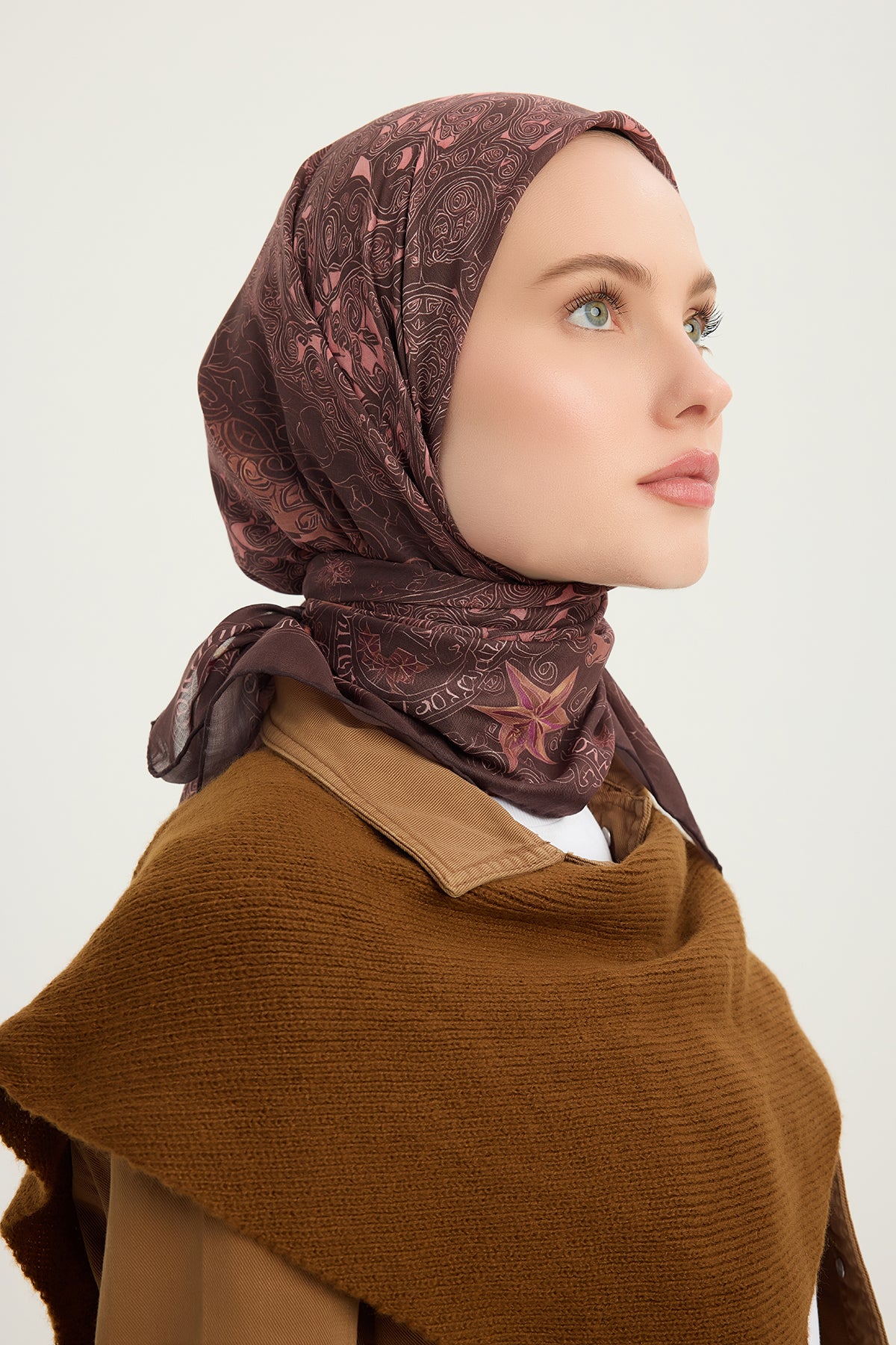 Efilia Desenli Eşarp Sonsuz Aşk Kahverengi