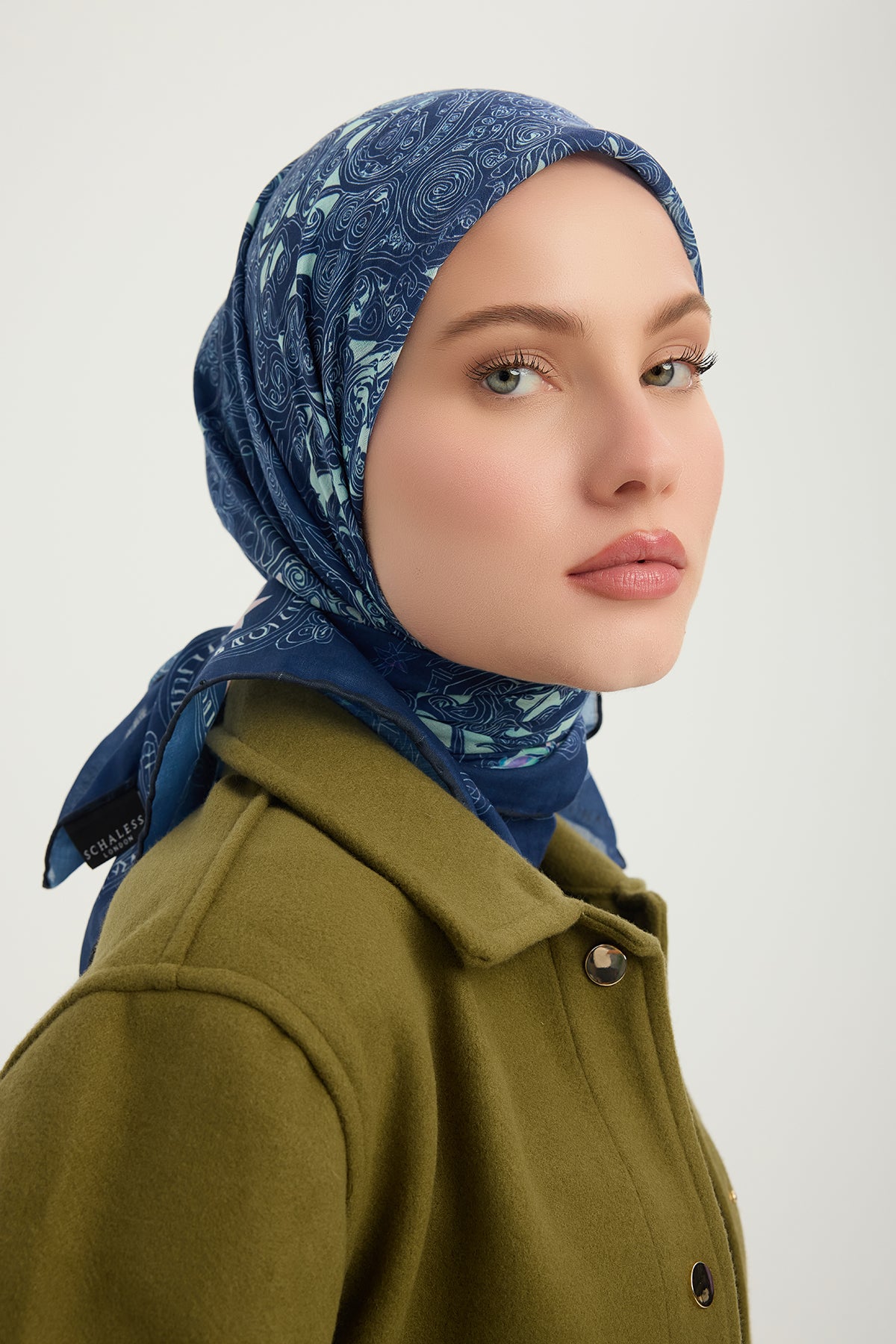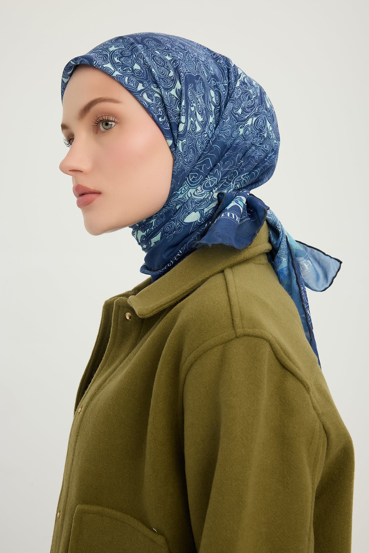 Efilia Desenli Eşarp Sonsuz Aşk Lacivert