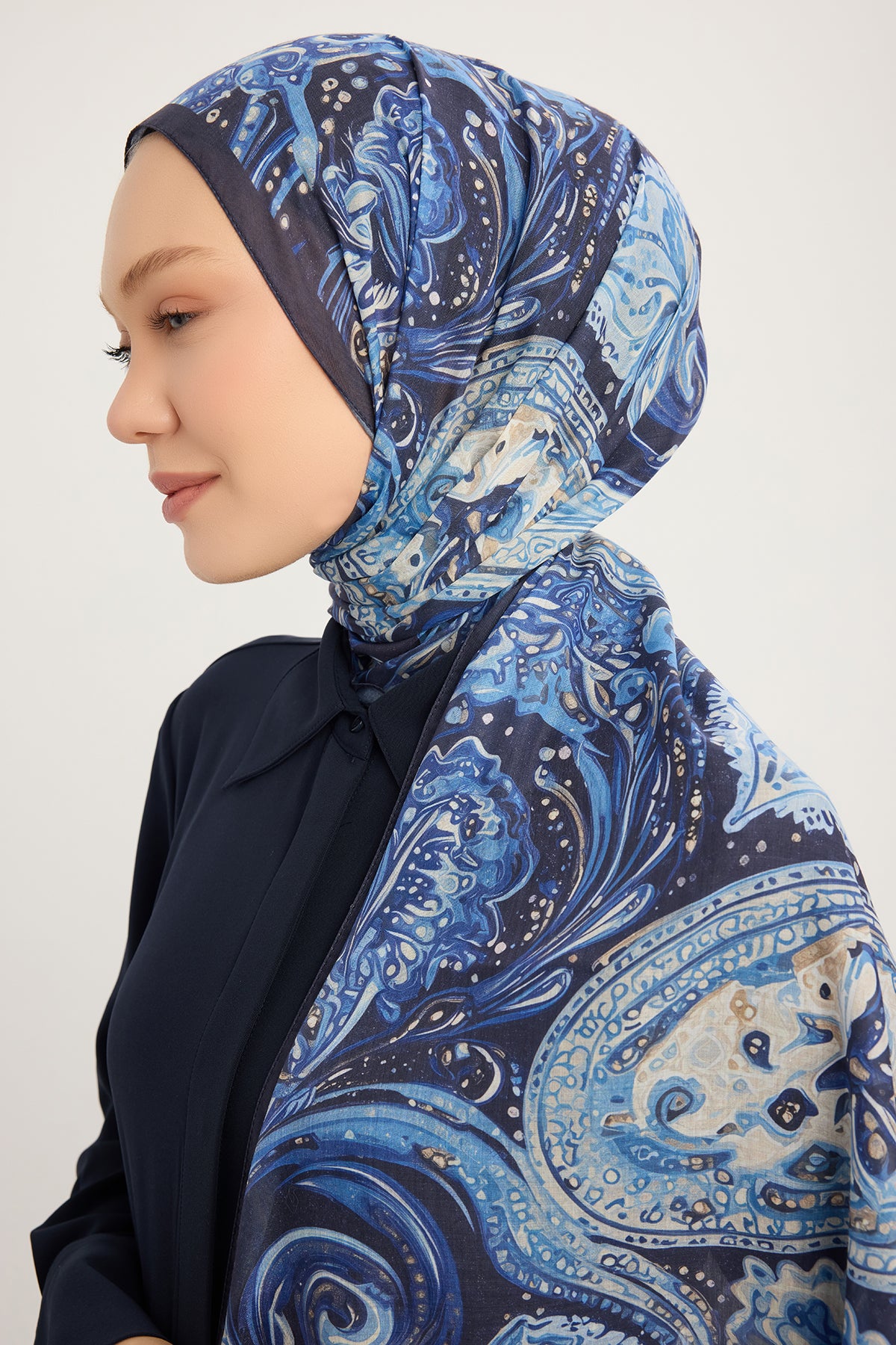 Efilia Desenli Şal Kozmik Paisley Lacivert