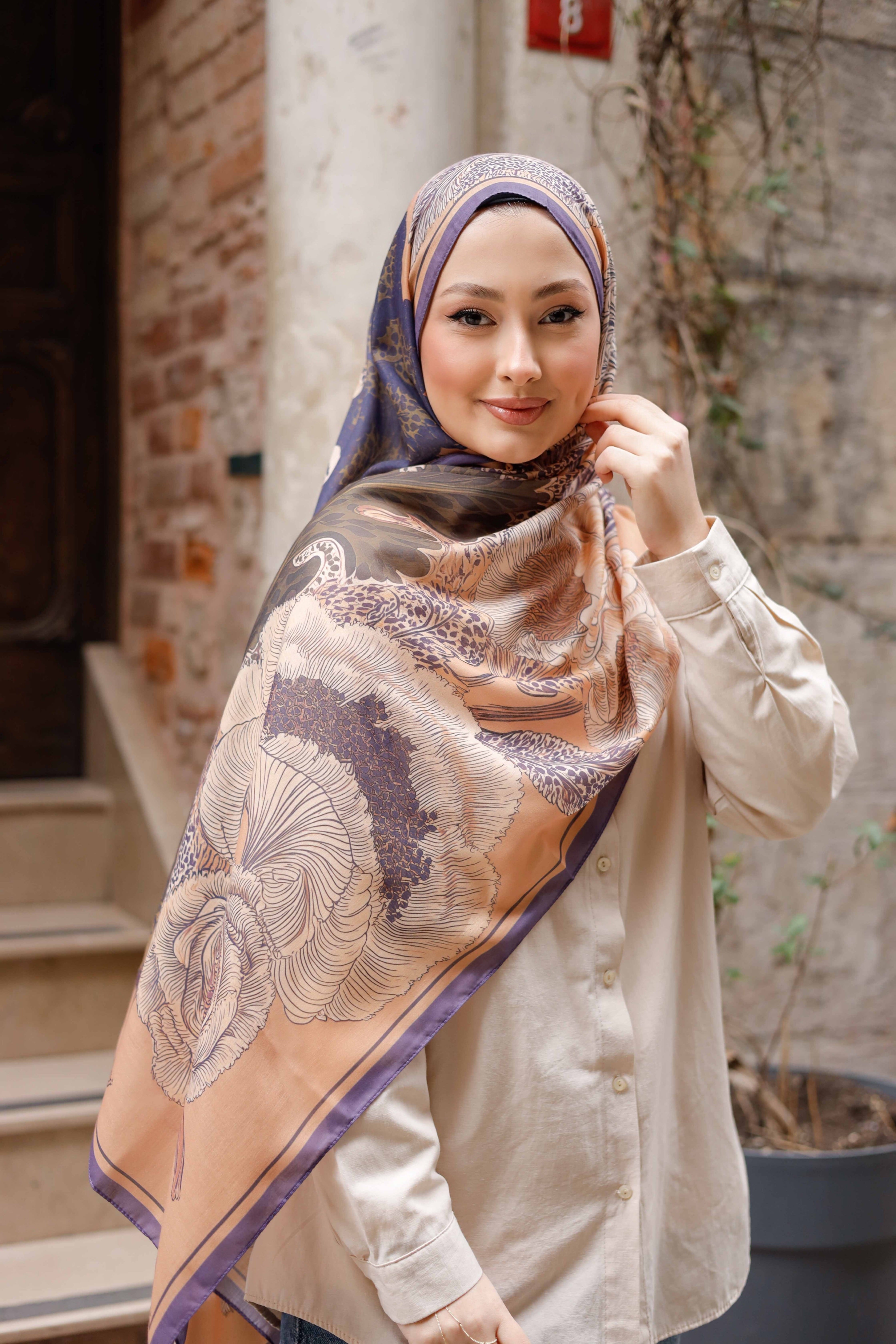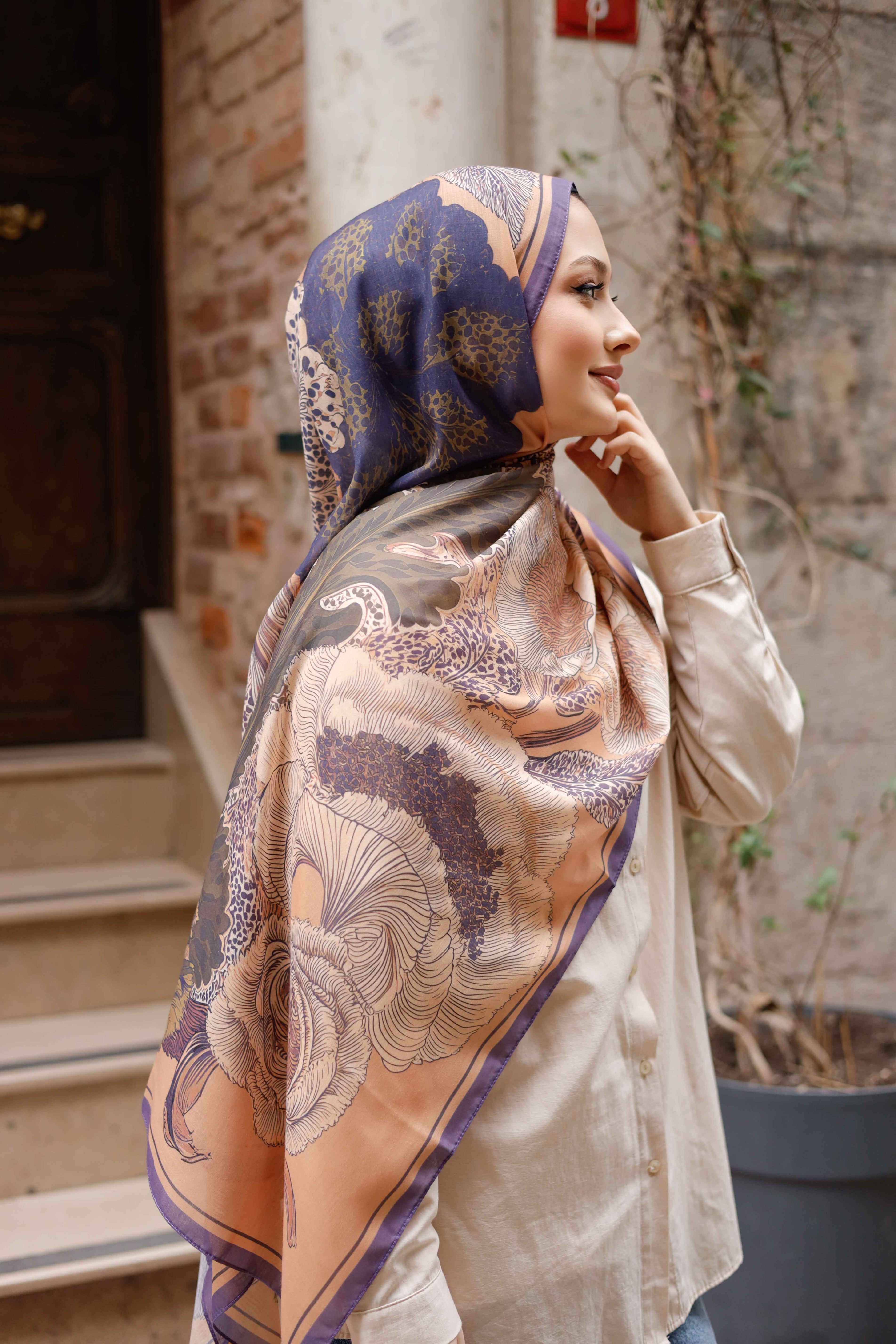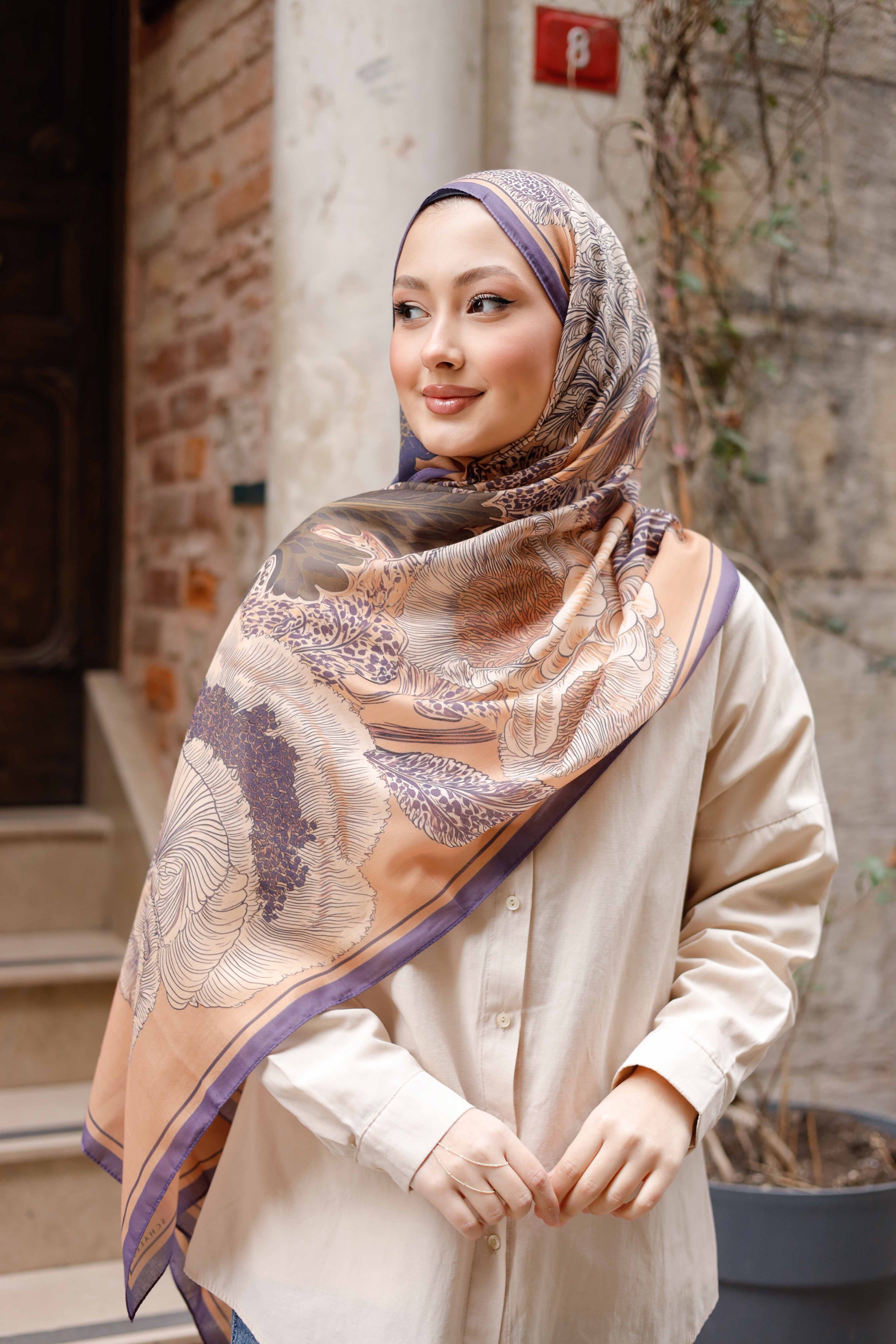 Efilia Desenli Şal Mercan Bahçesi Açık Kahverengi