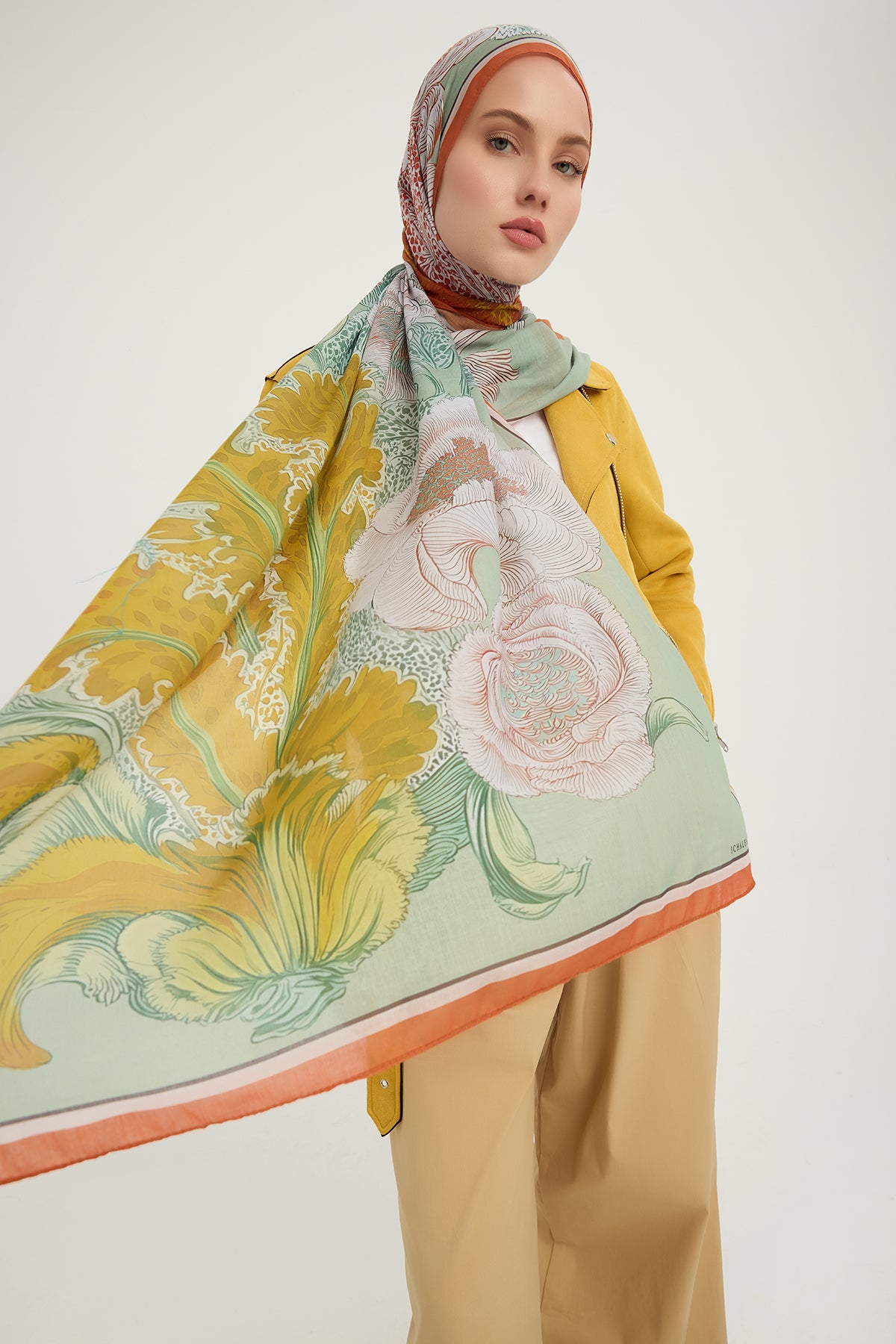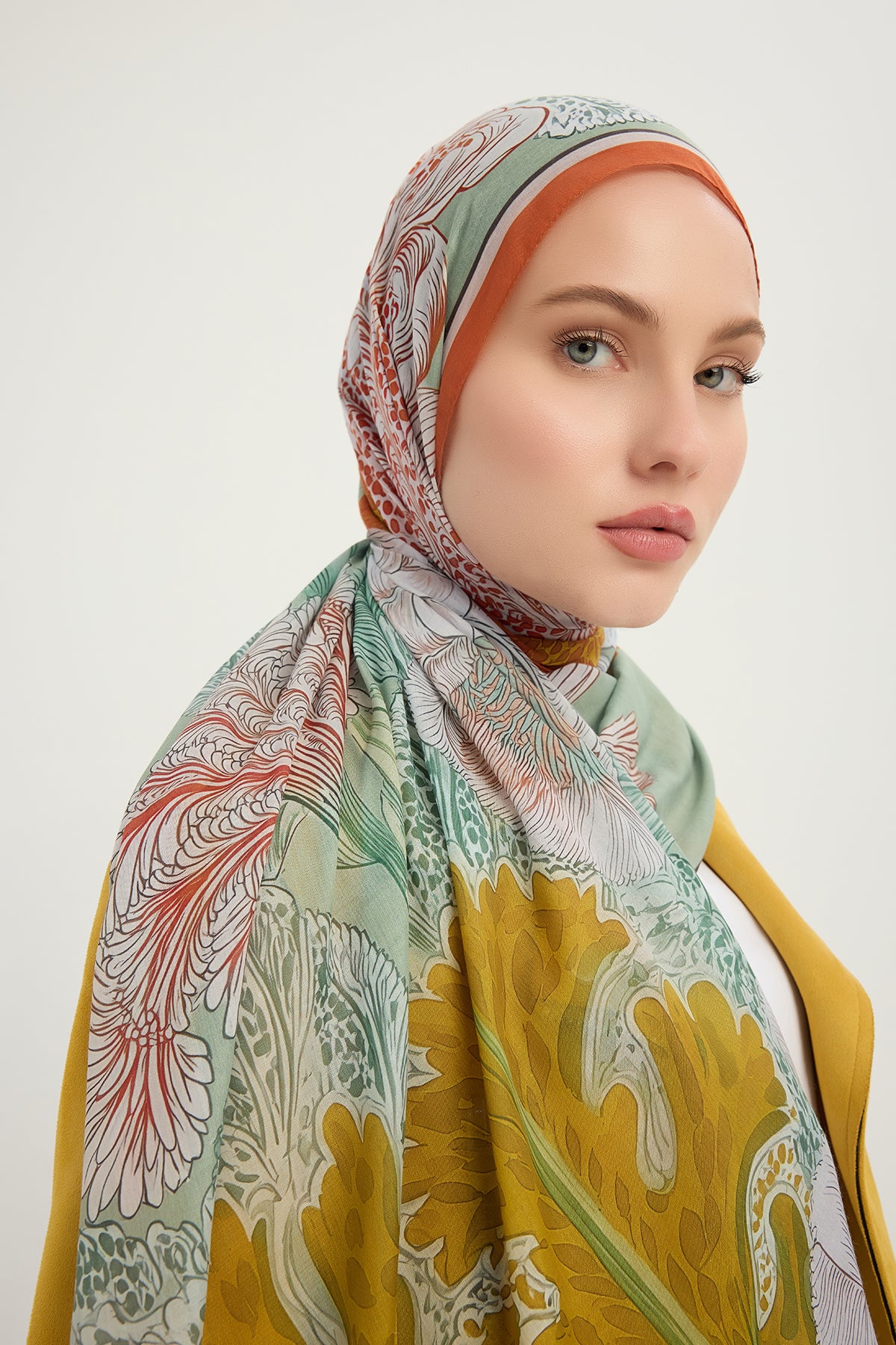 Efilia Desenli Şal Mercan Bahçesi Kiremit