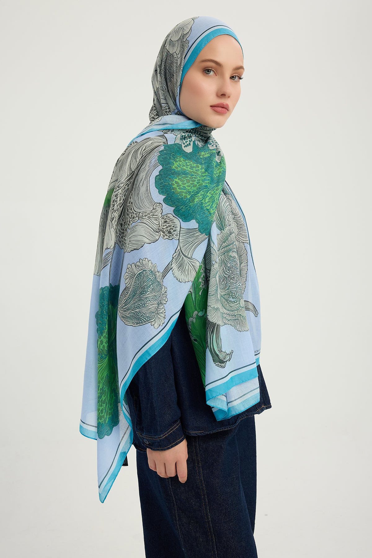 Efilia Desenli Şal Mercan Bahçesi Mavi