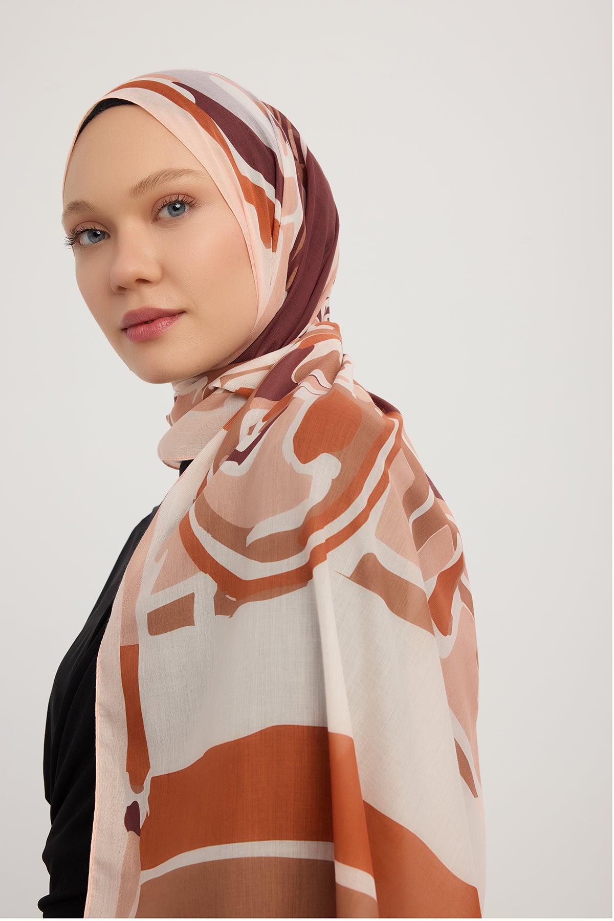 Efilia Desenli Şal Pastel Yolculuk Kiremit