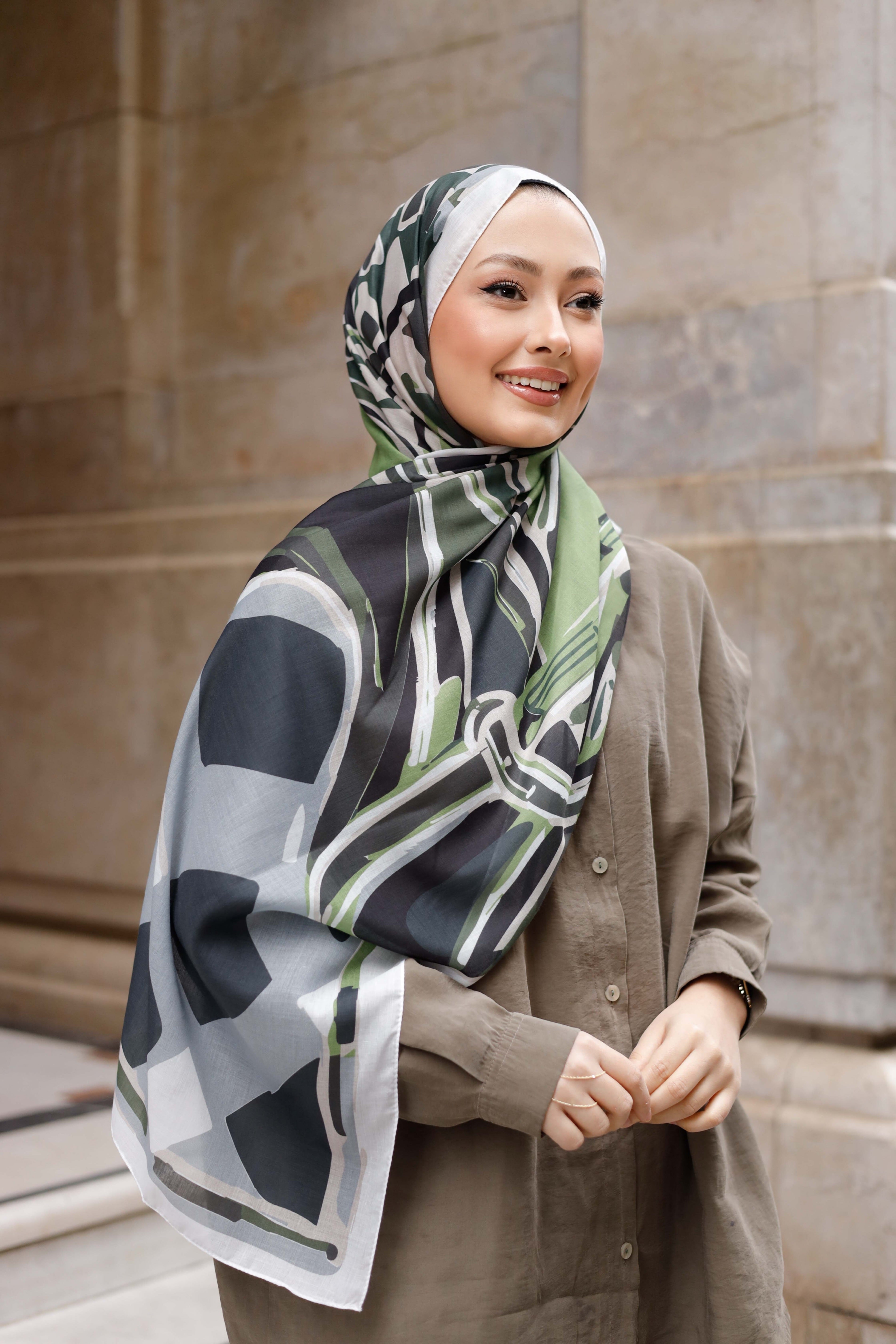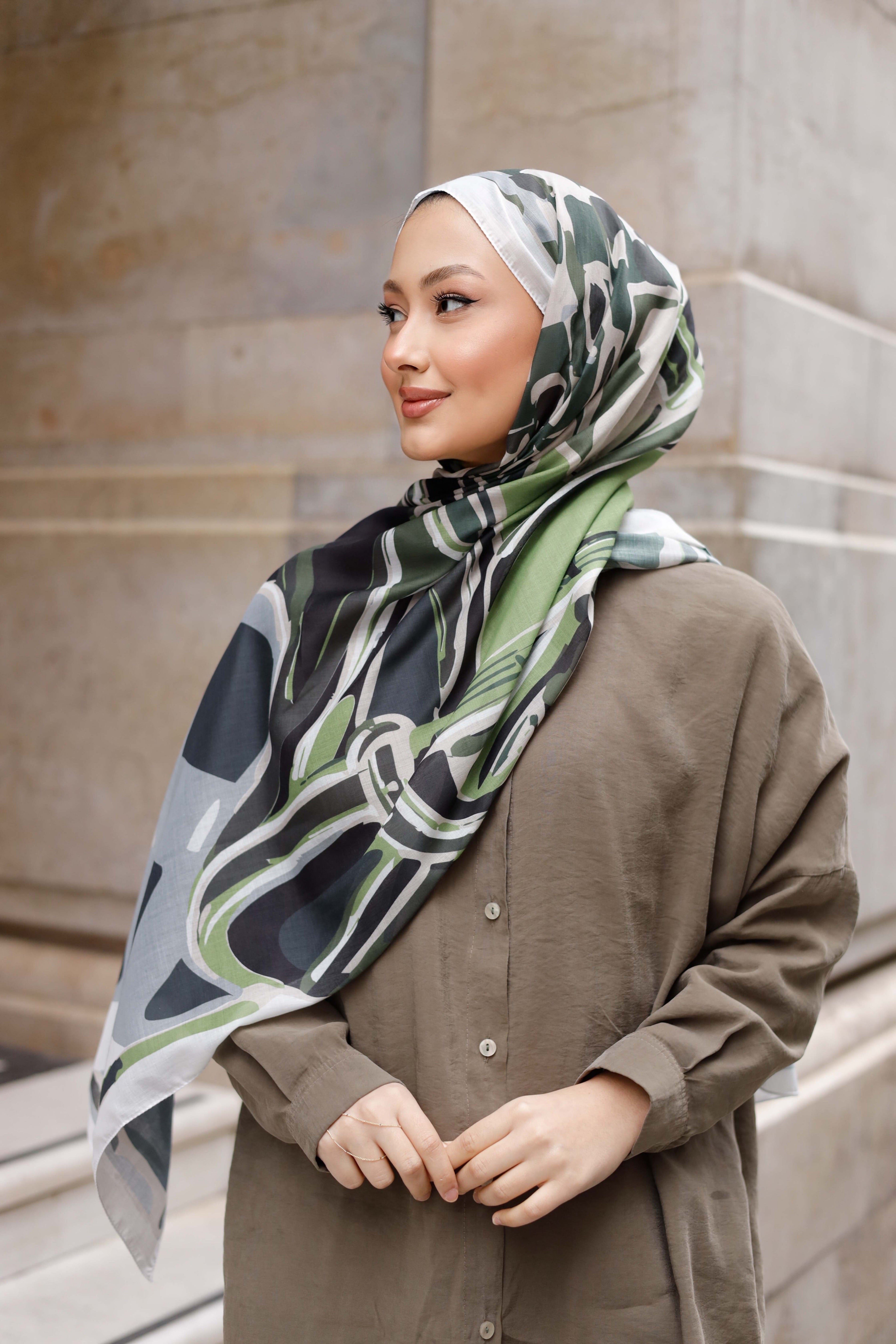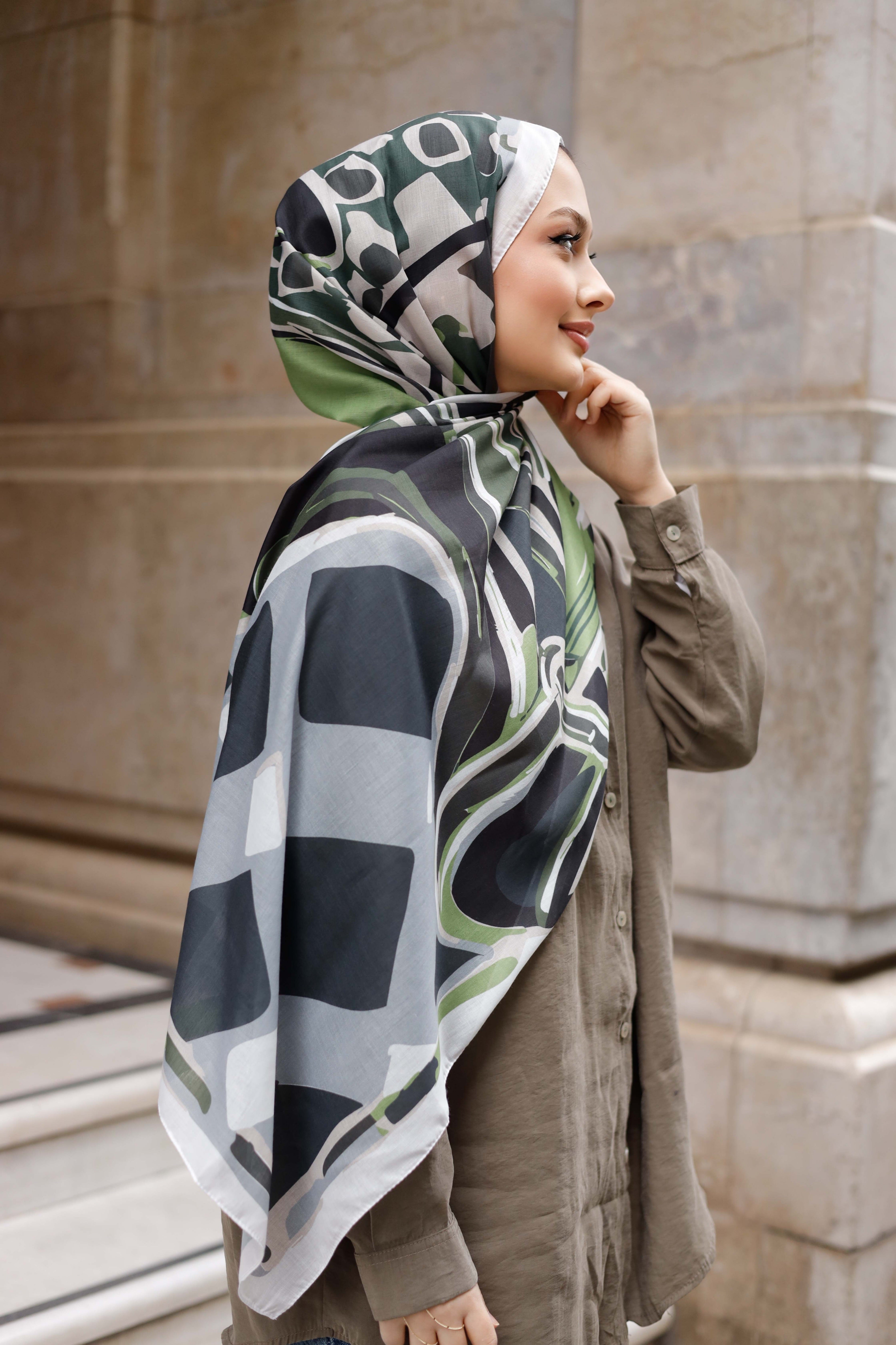 Efilia Desenli Şal Pastel Yolculuk Yeşil