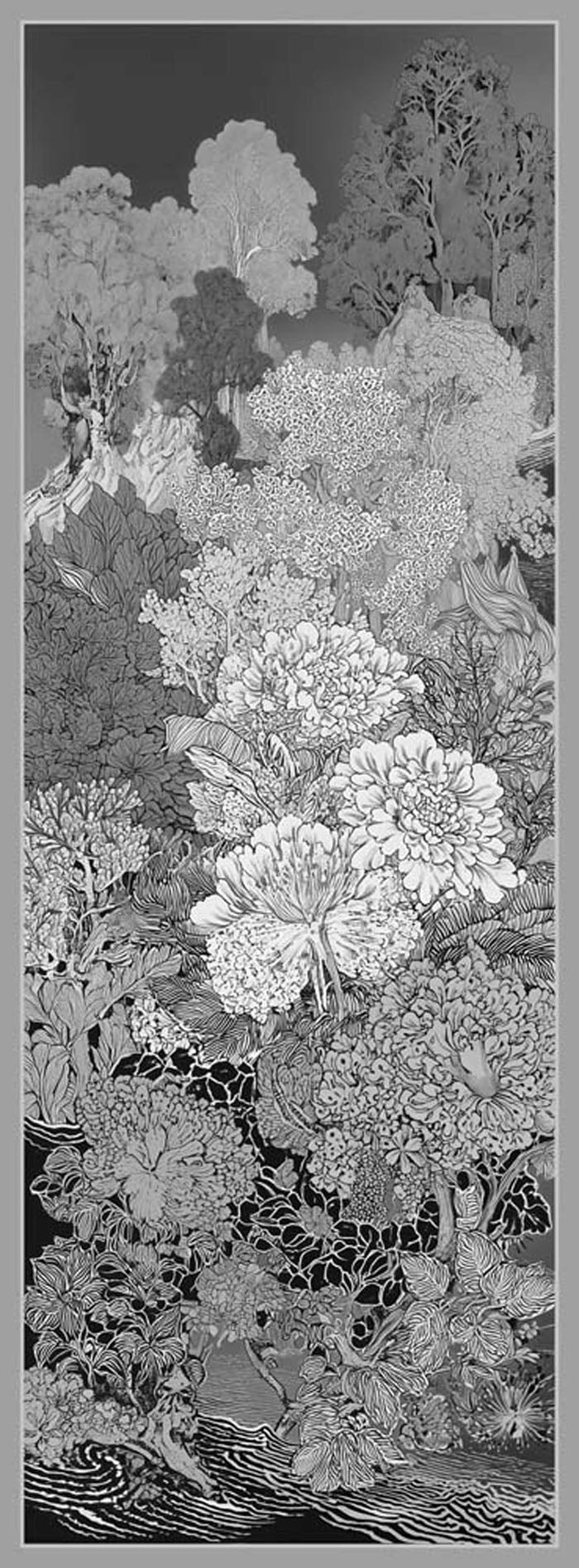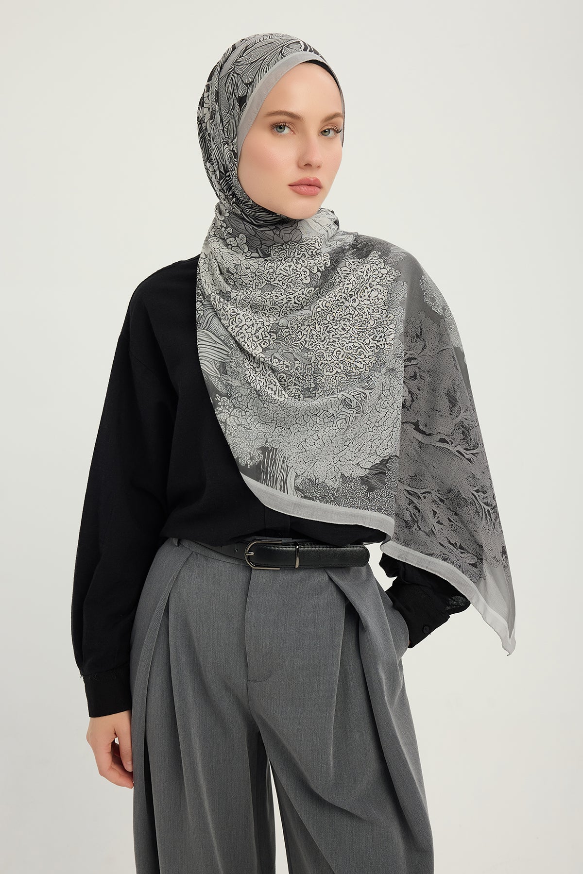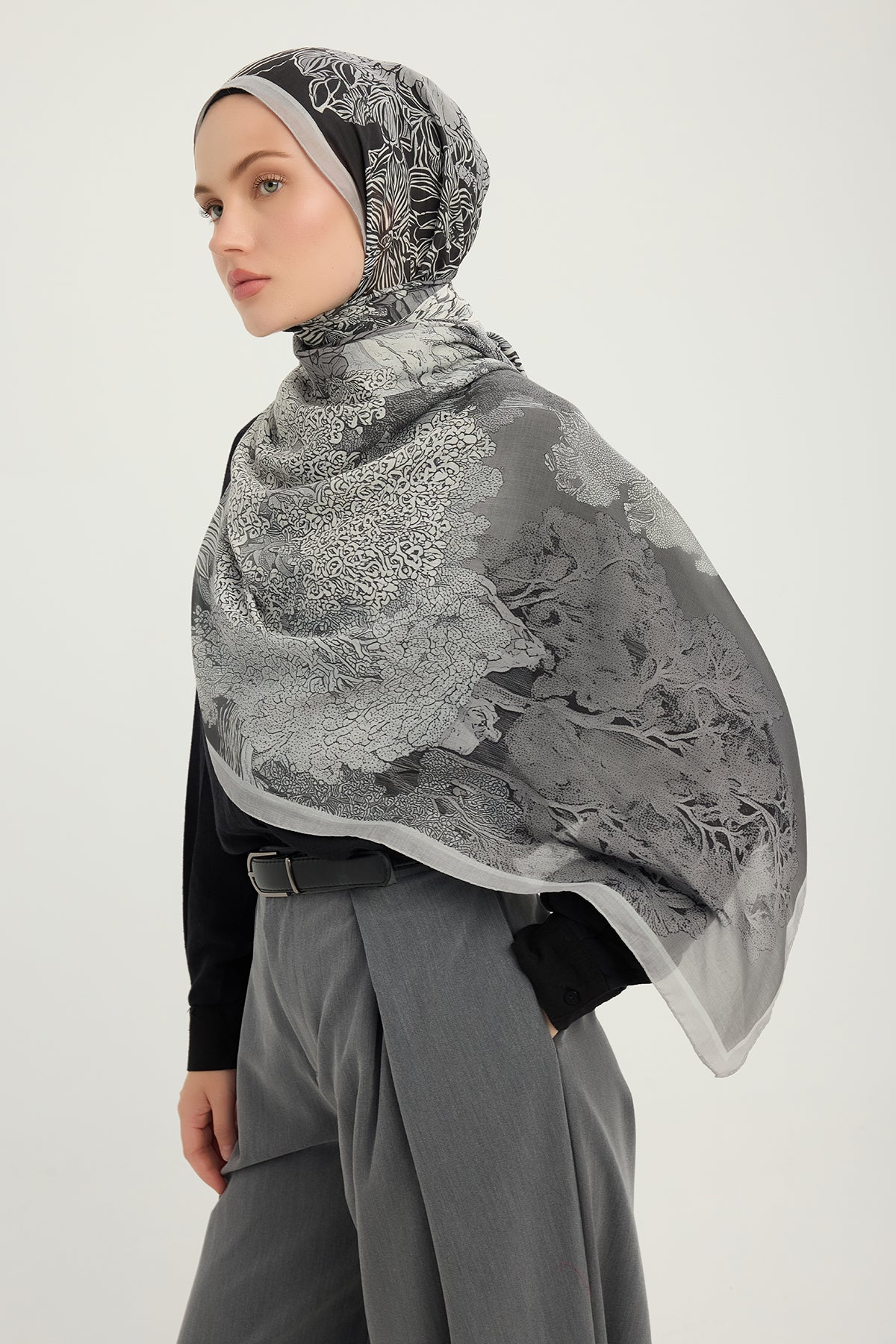 Efilia Desenli Şal Sessiz Mevsimler Gri