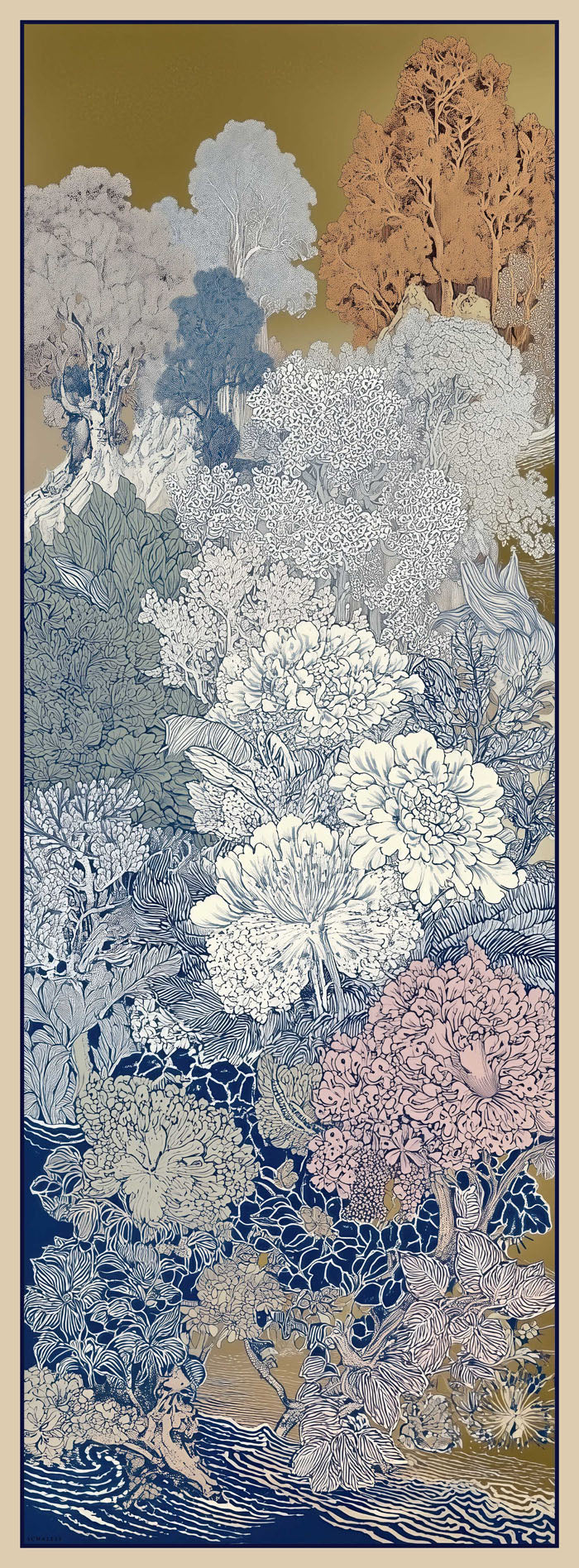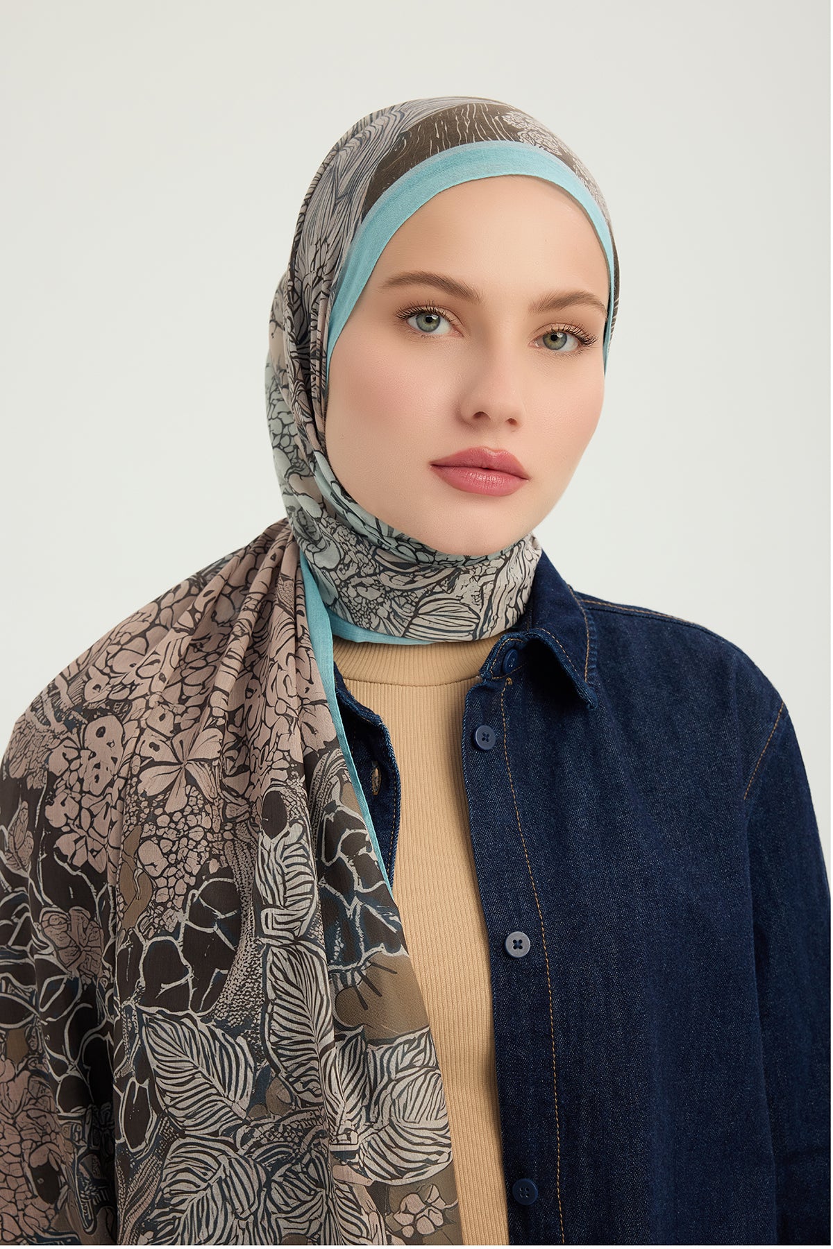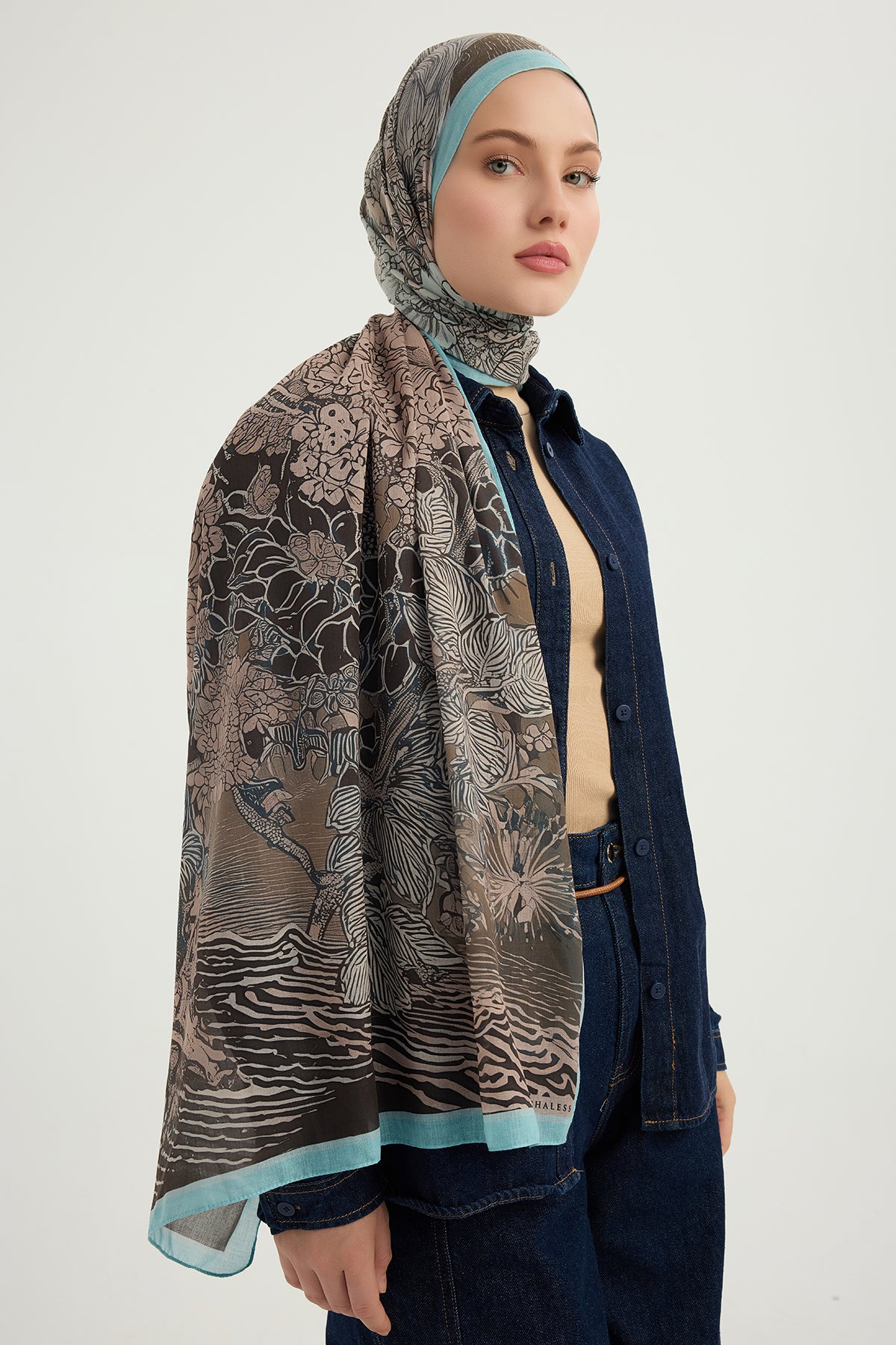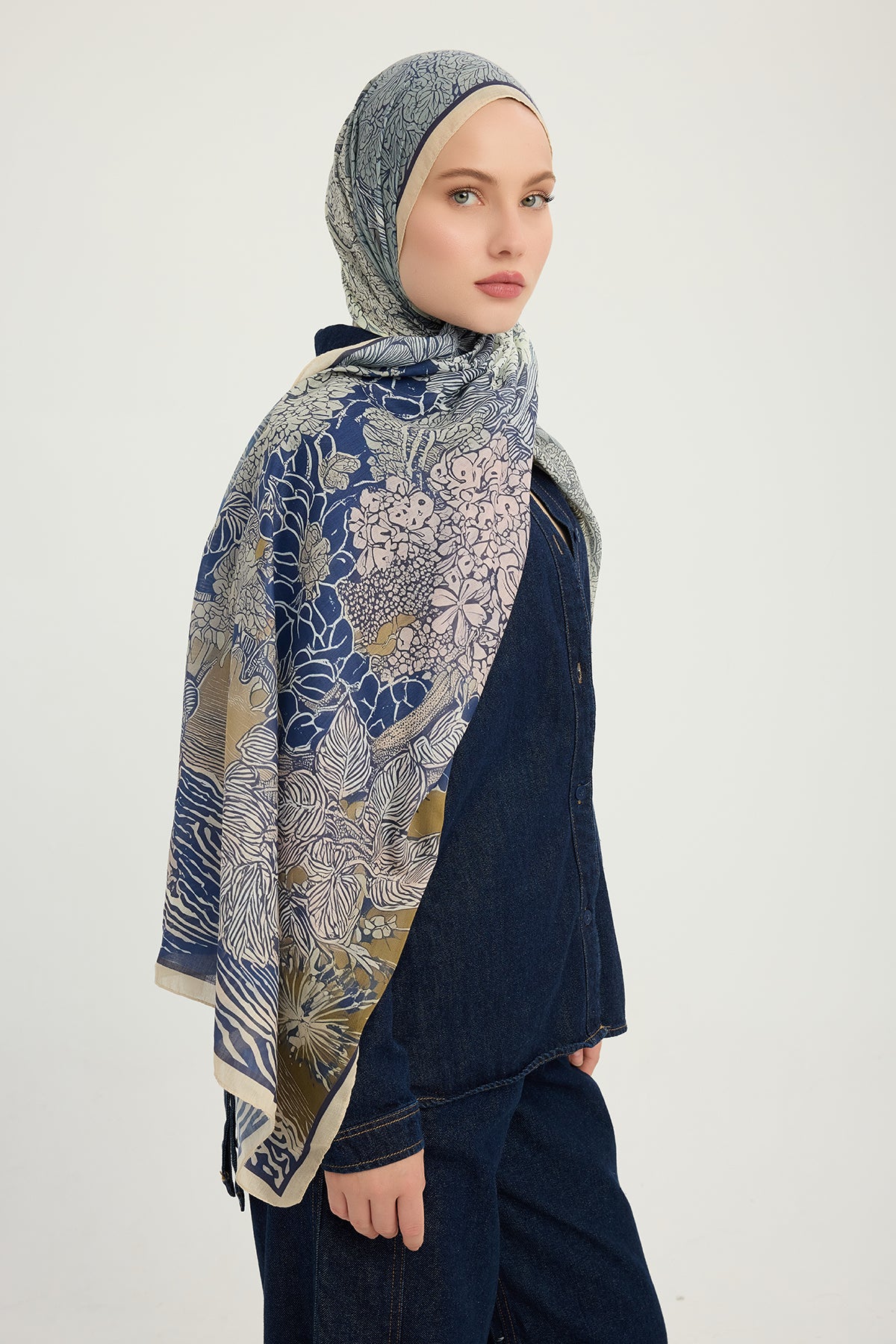 Efilia Desenli Şal Sessiz Mevsimler Mavi