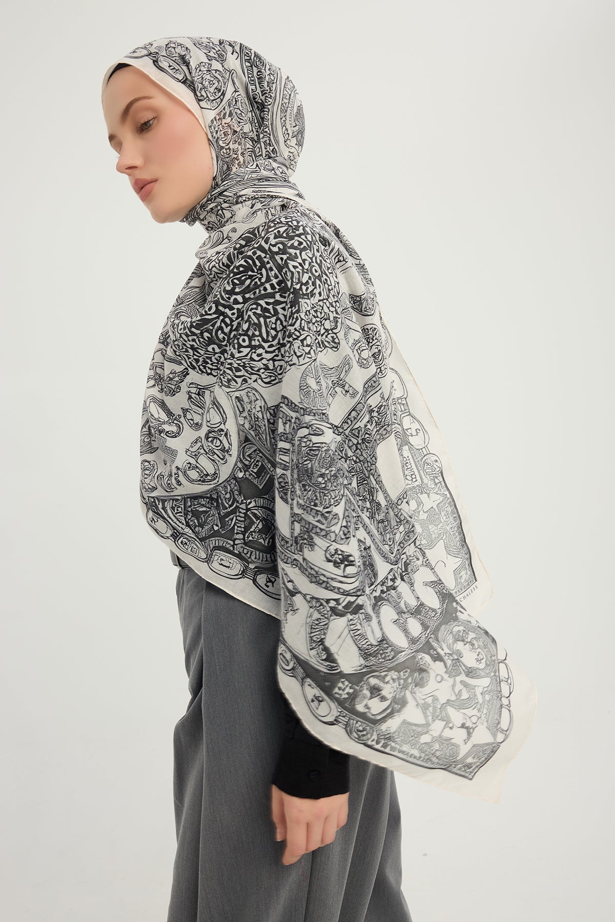 Efilia Desenli Şal Sonsuz Aşk Gri