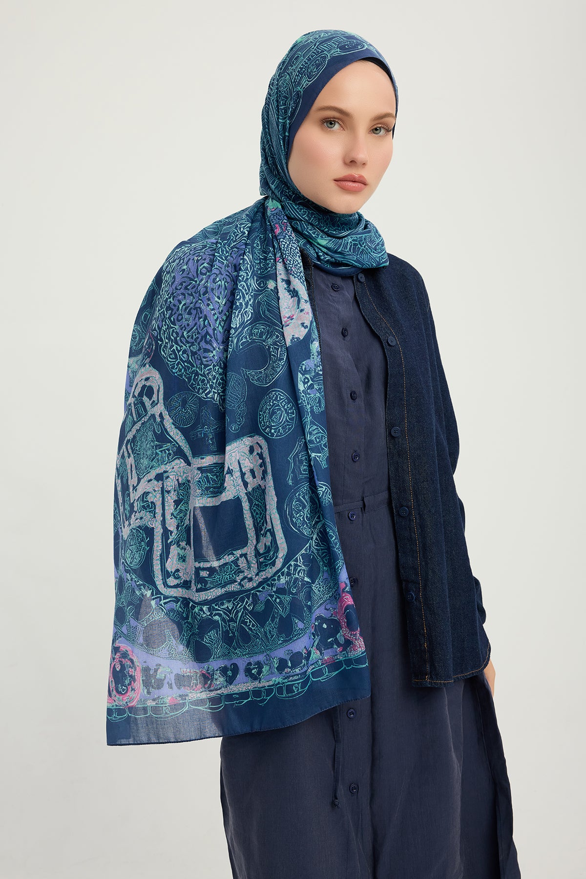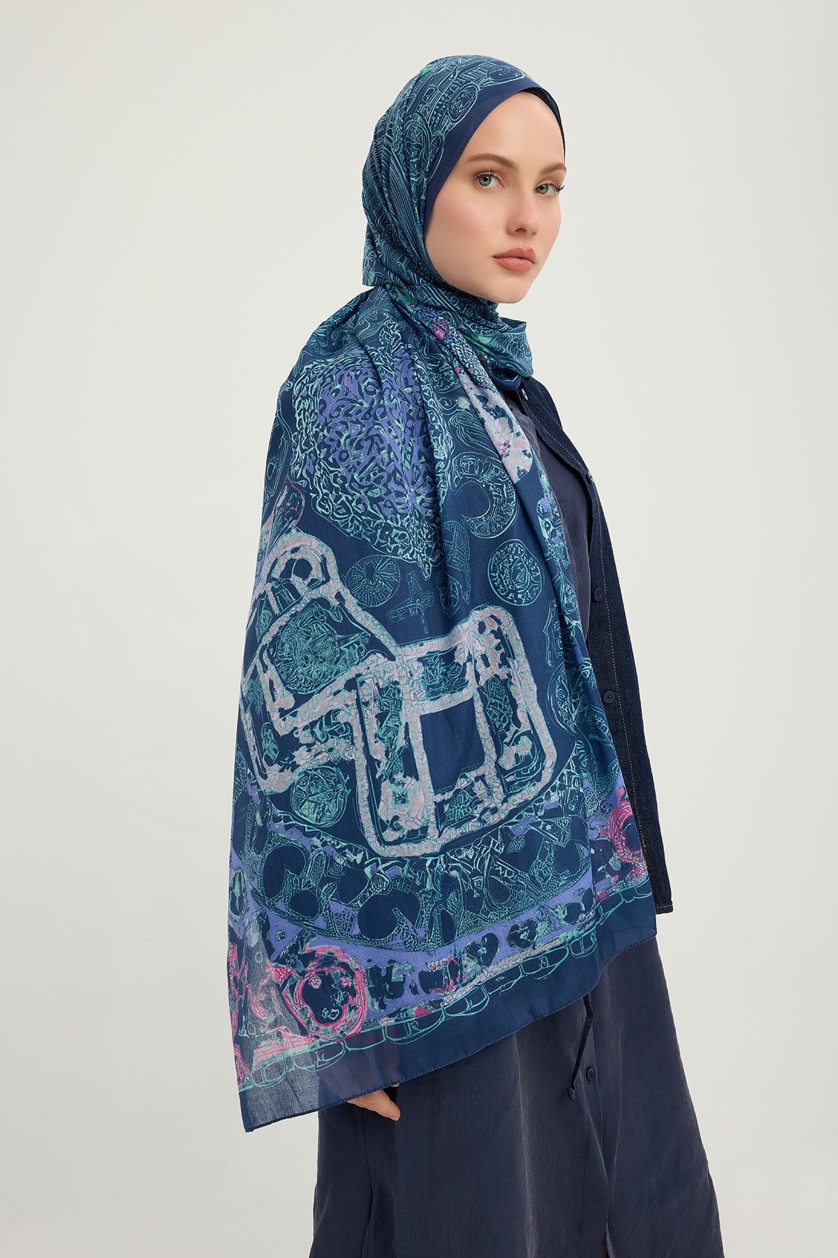 Efilia Desenli Şal Sonsuz Aşk Lacivert