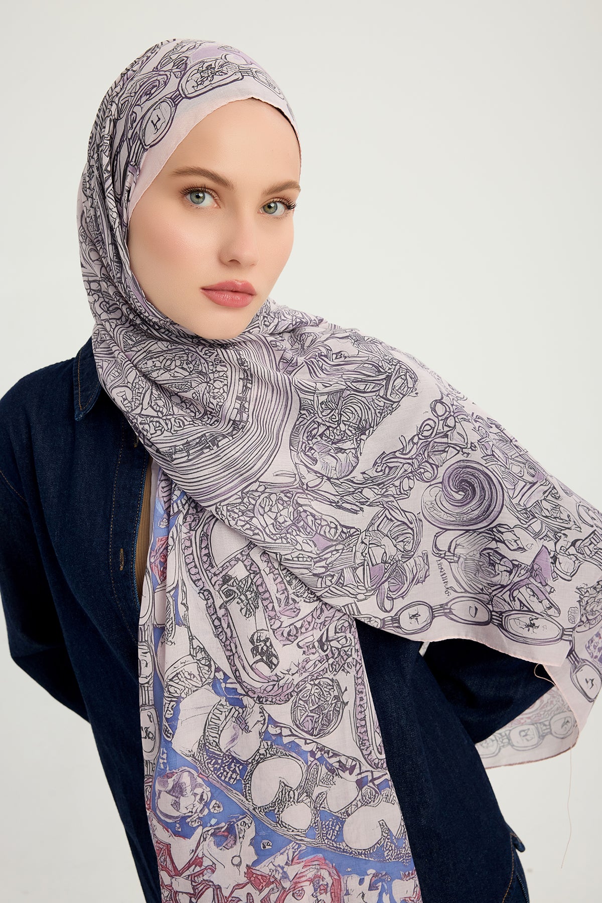 Efilia Desenli Şal Sonsuz Aşk Lila