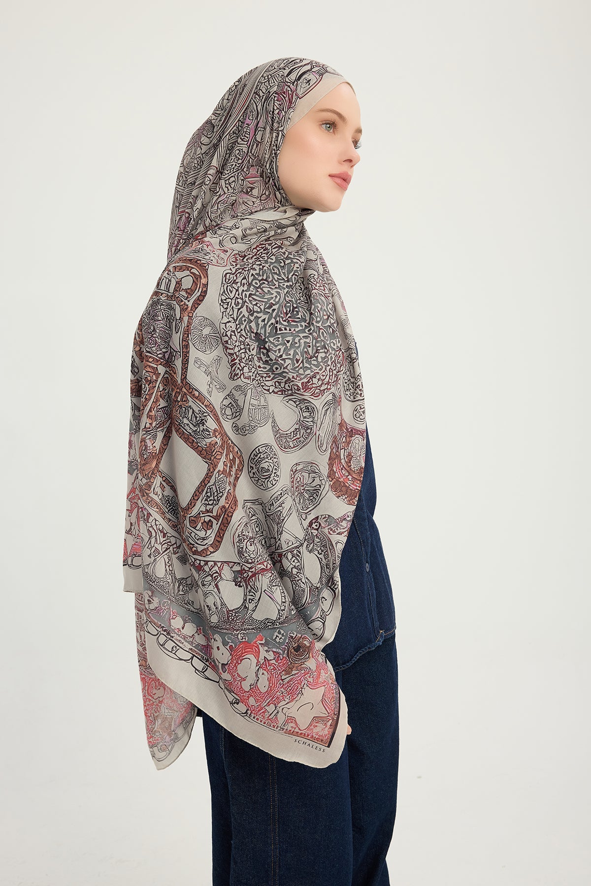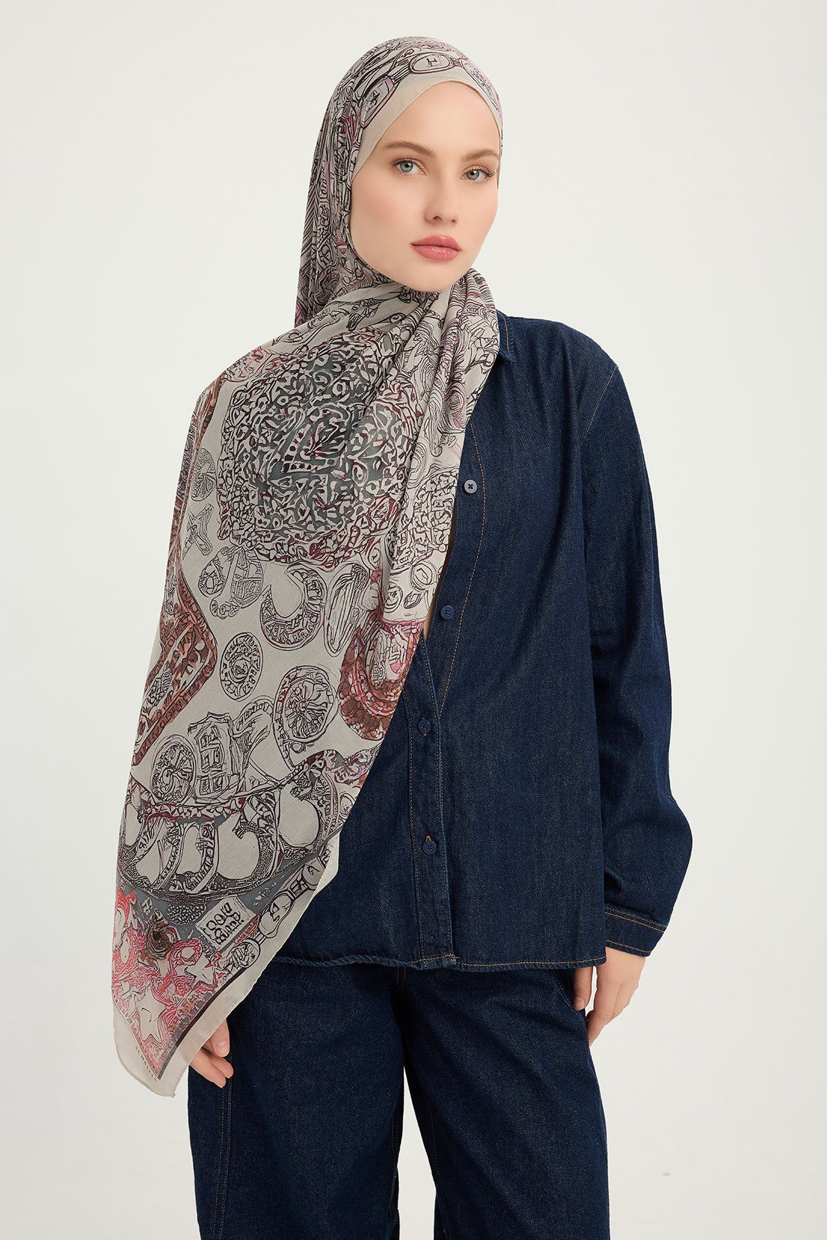 Efilia Desenli Şal Sonsuz Aşk Vizon