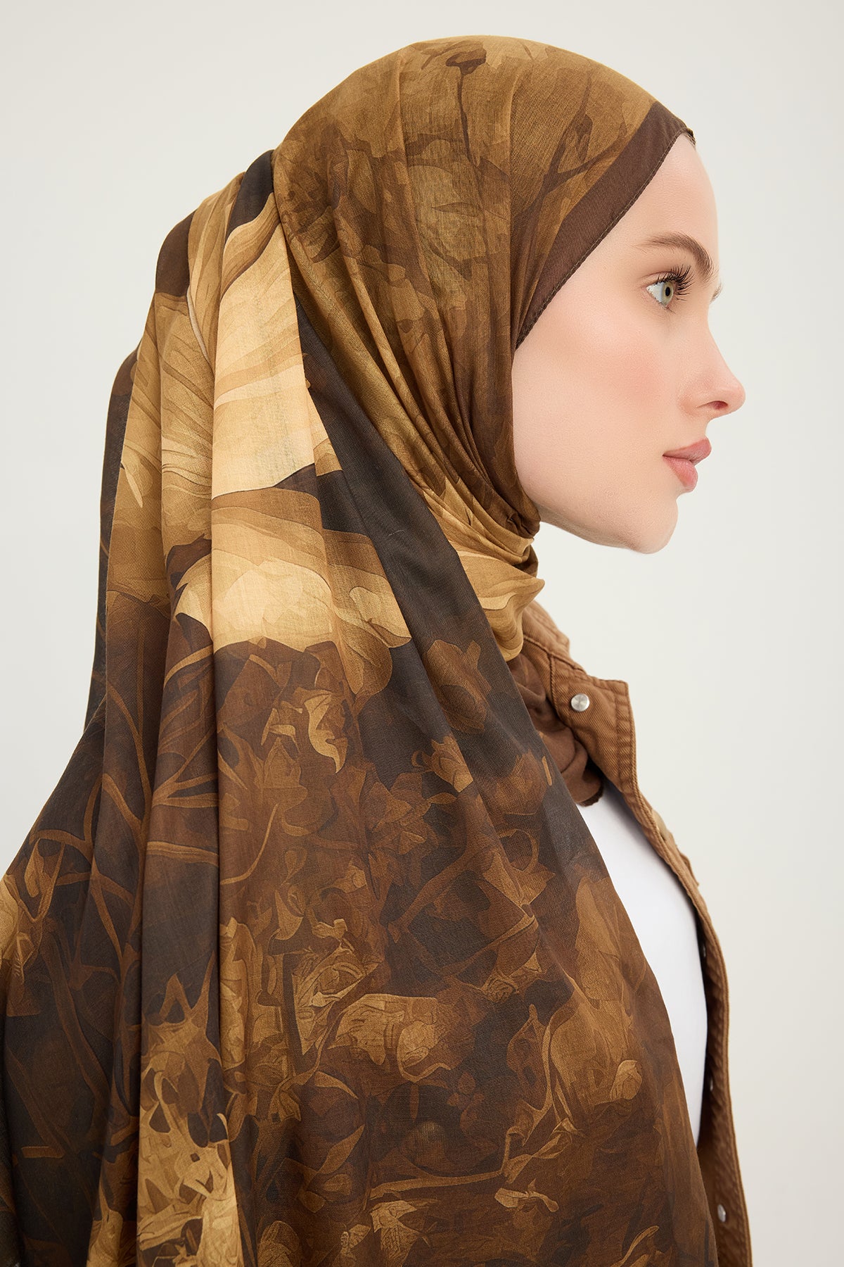 Efilia Desenli Şal Zamansız Hayal Kahverengi