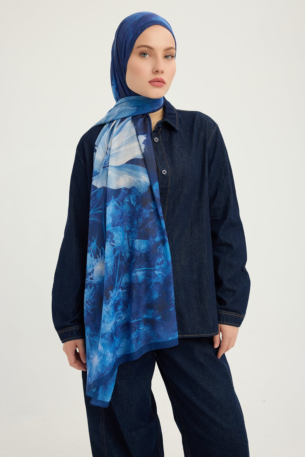 Efilia Desenli Şal Zamansız Hayal Mavi