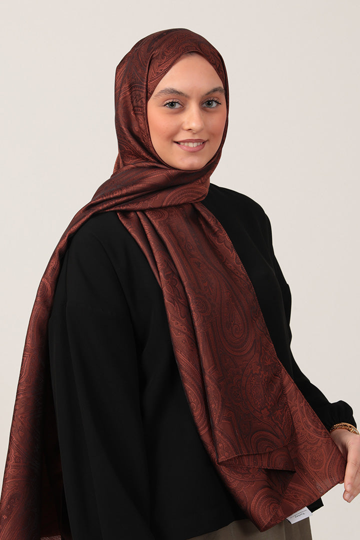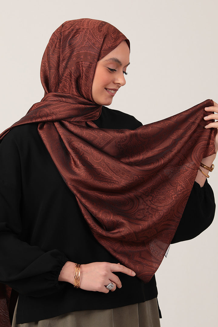 İpeksi Çift Taraflı Jakar Şal Hint Bakır