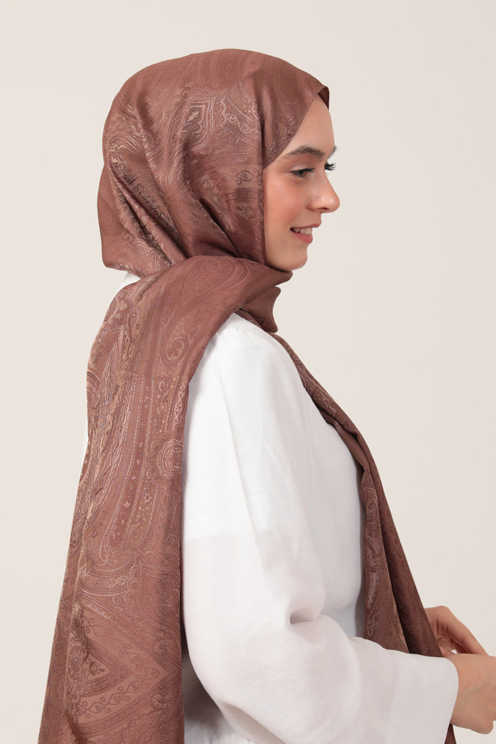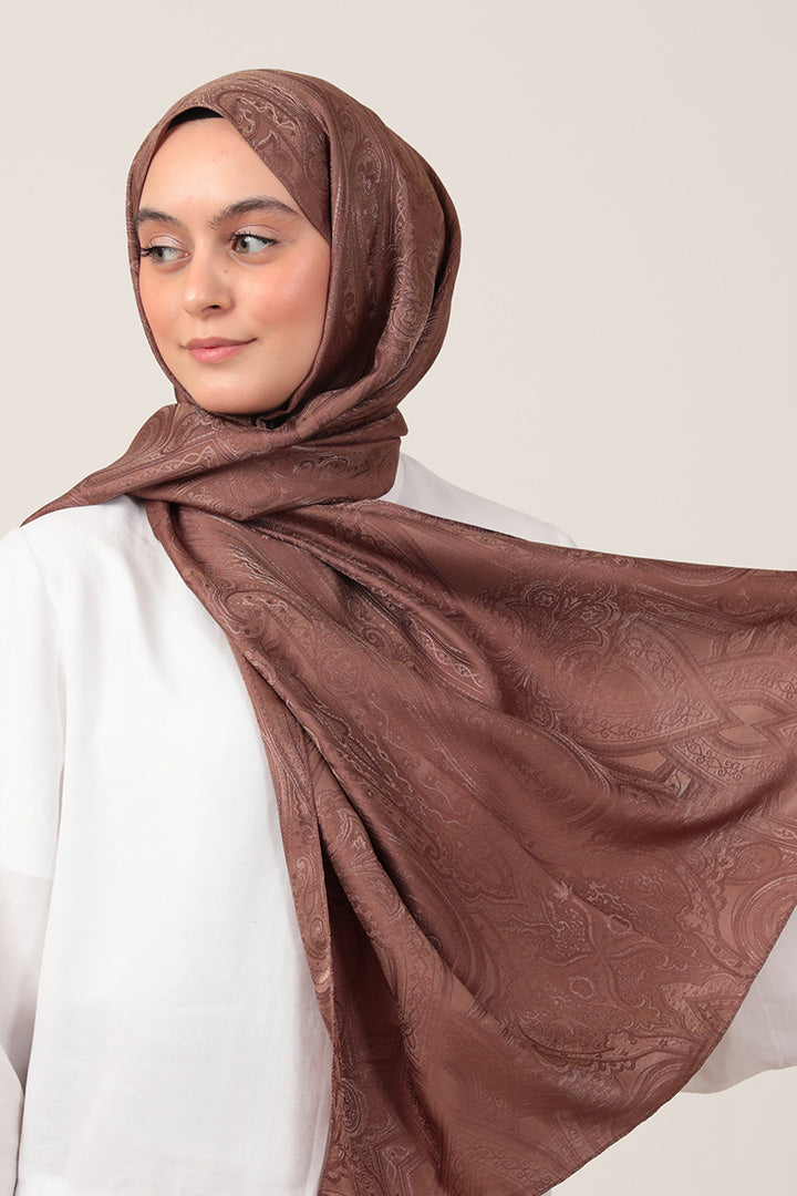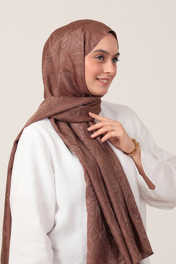 İpeksi Çift Taraflı Jakar Şal Hint Tatlı Kahve