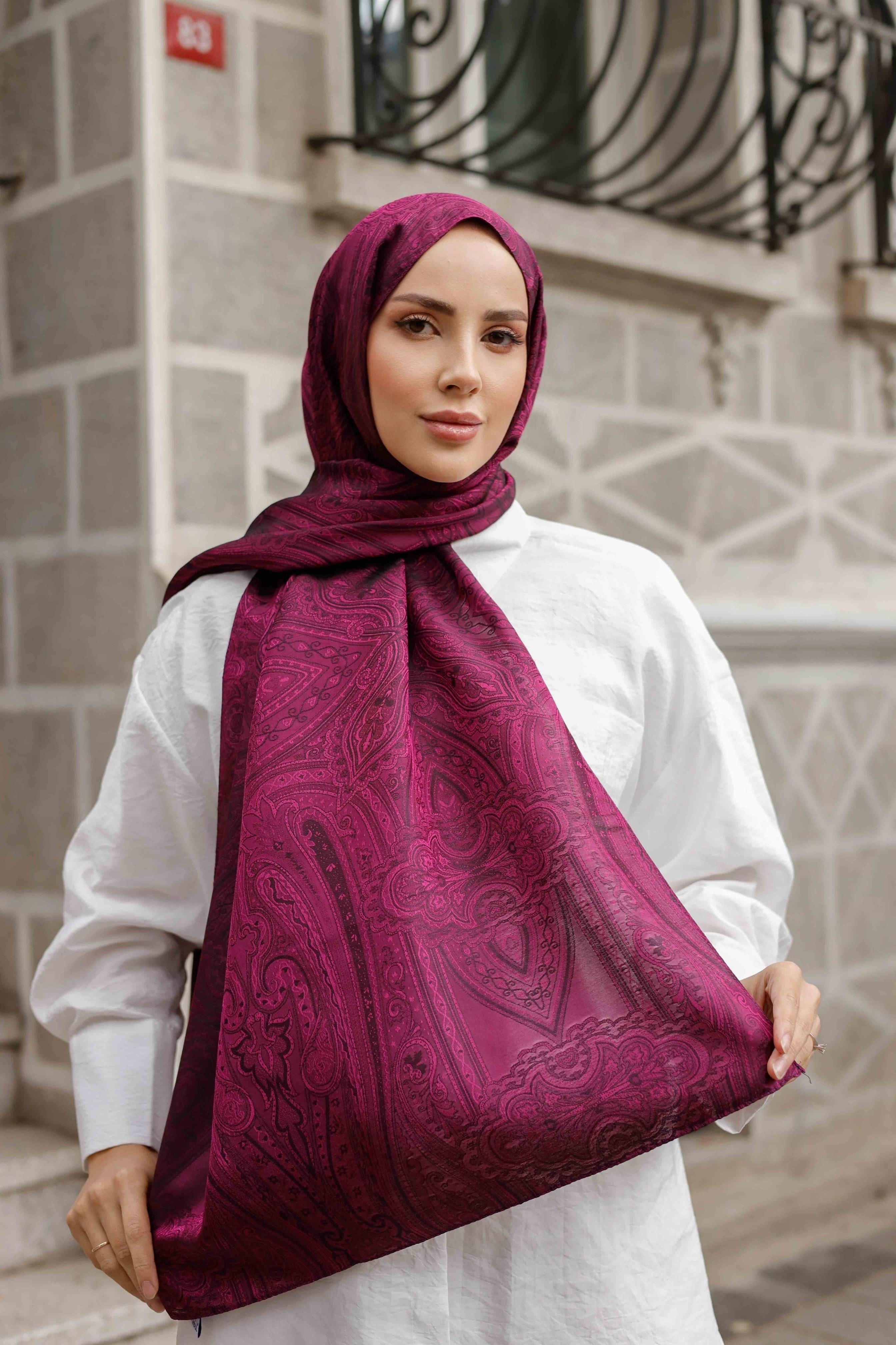 İpeksi Çift Taraflı Jakar Şal Hint Fuşya