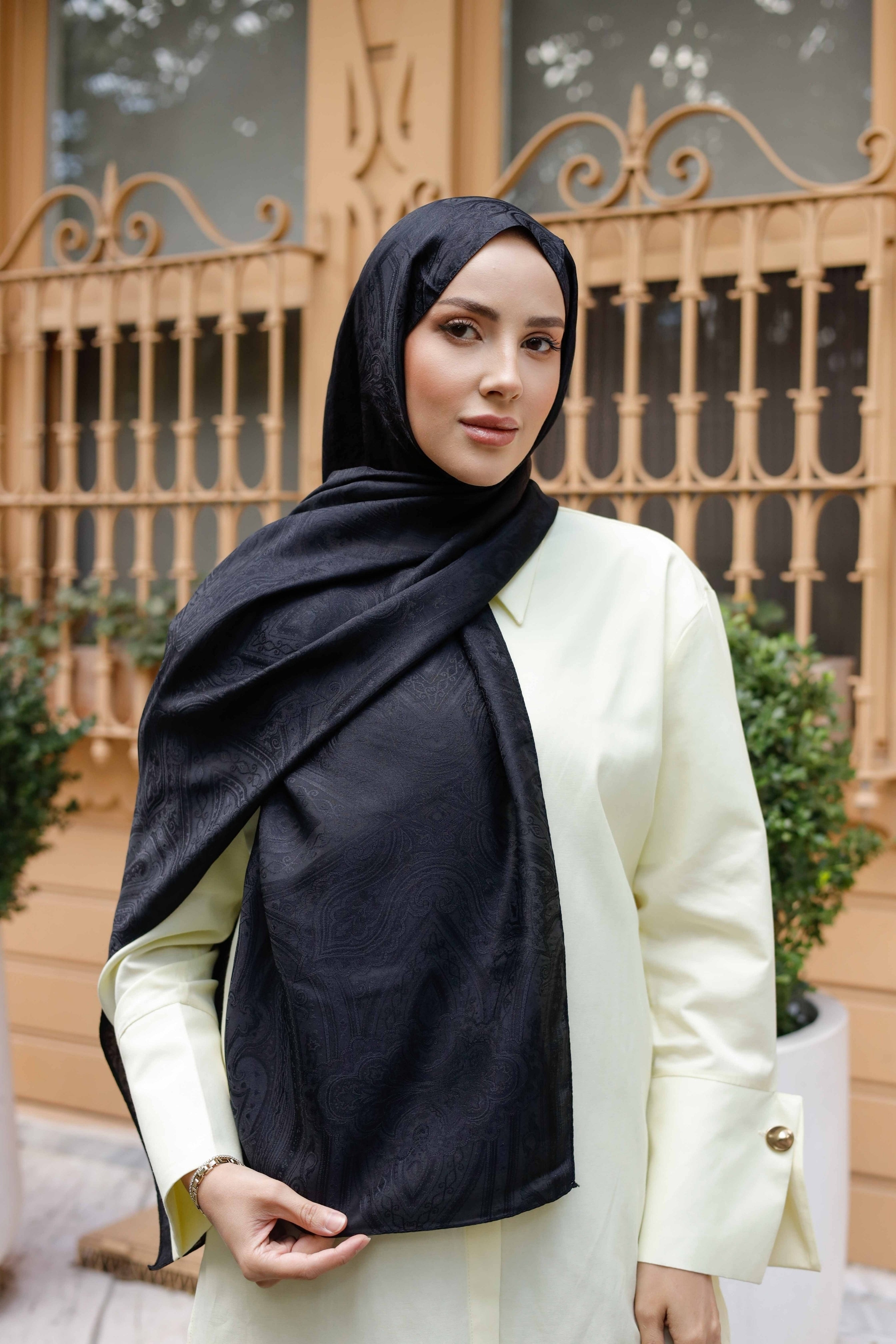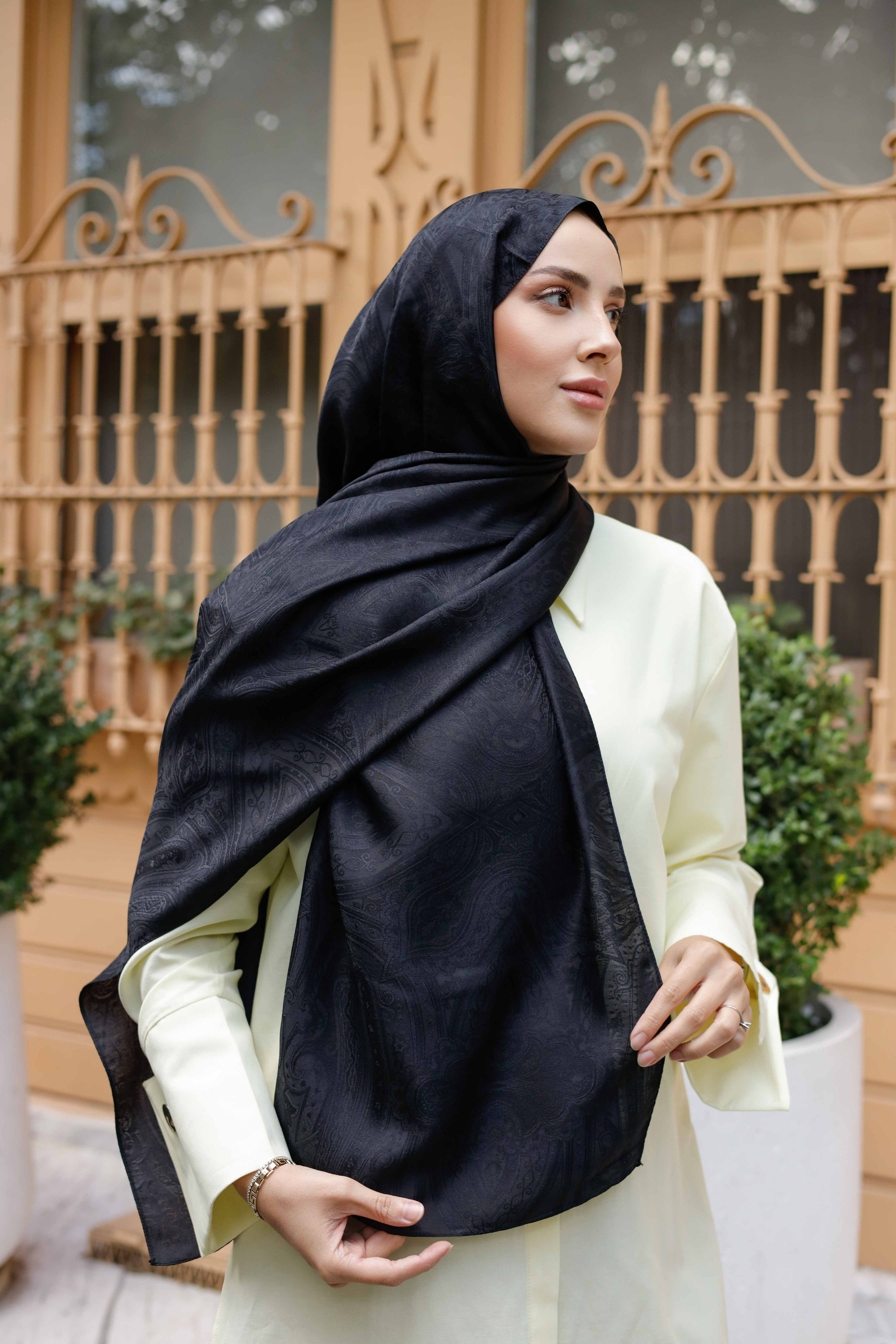 İpeksi Çift Taraflı Jakar Şal Hint Siyah