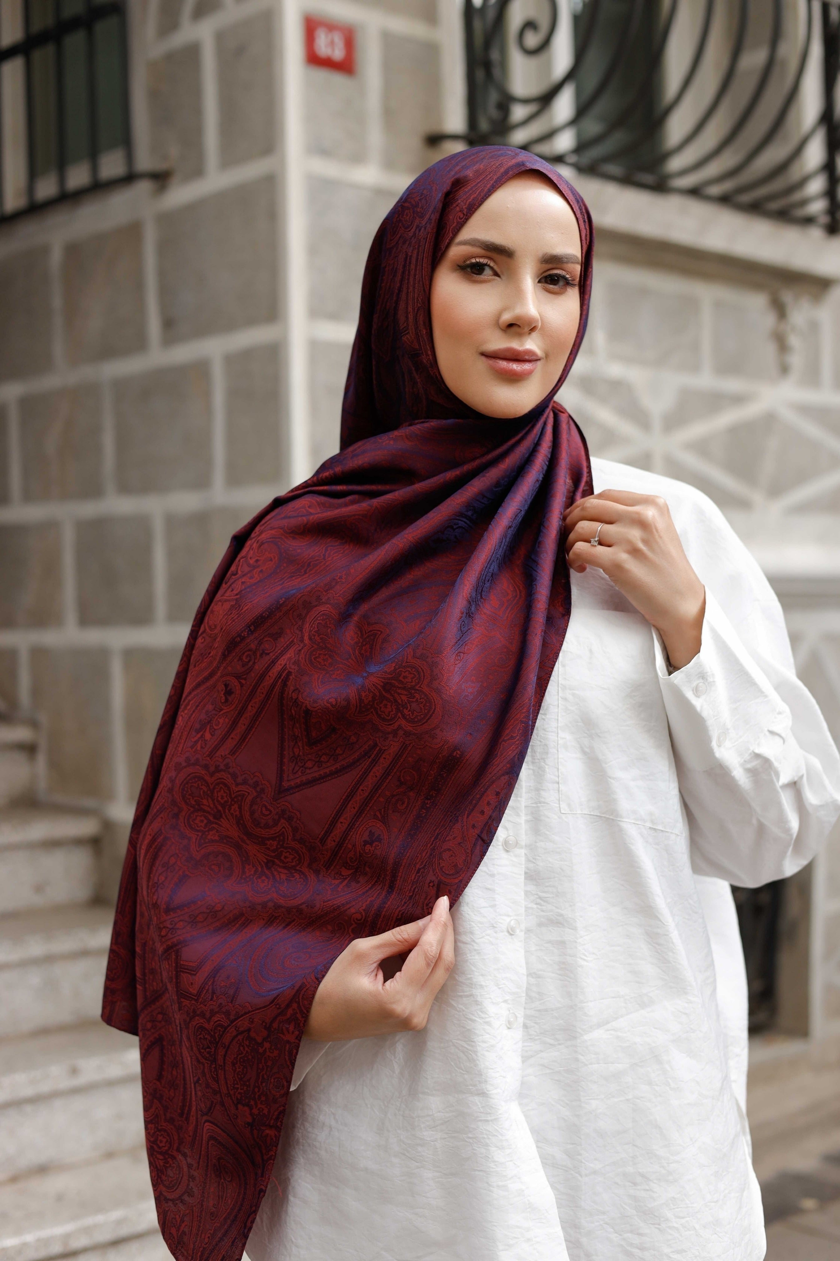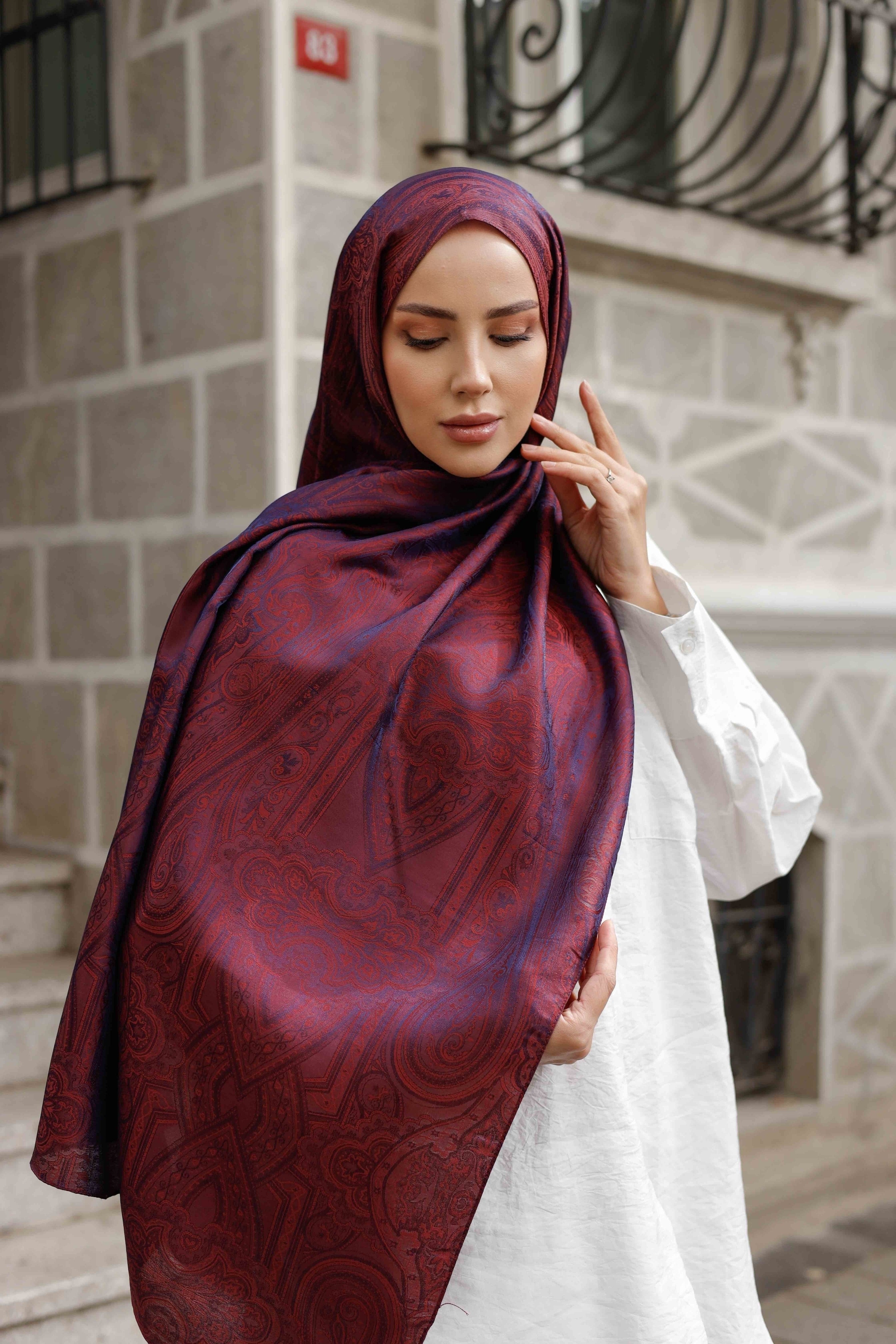 İpeksi Çift Taraflı Jakar Şal Hint Vişne