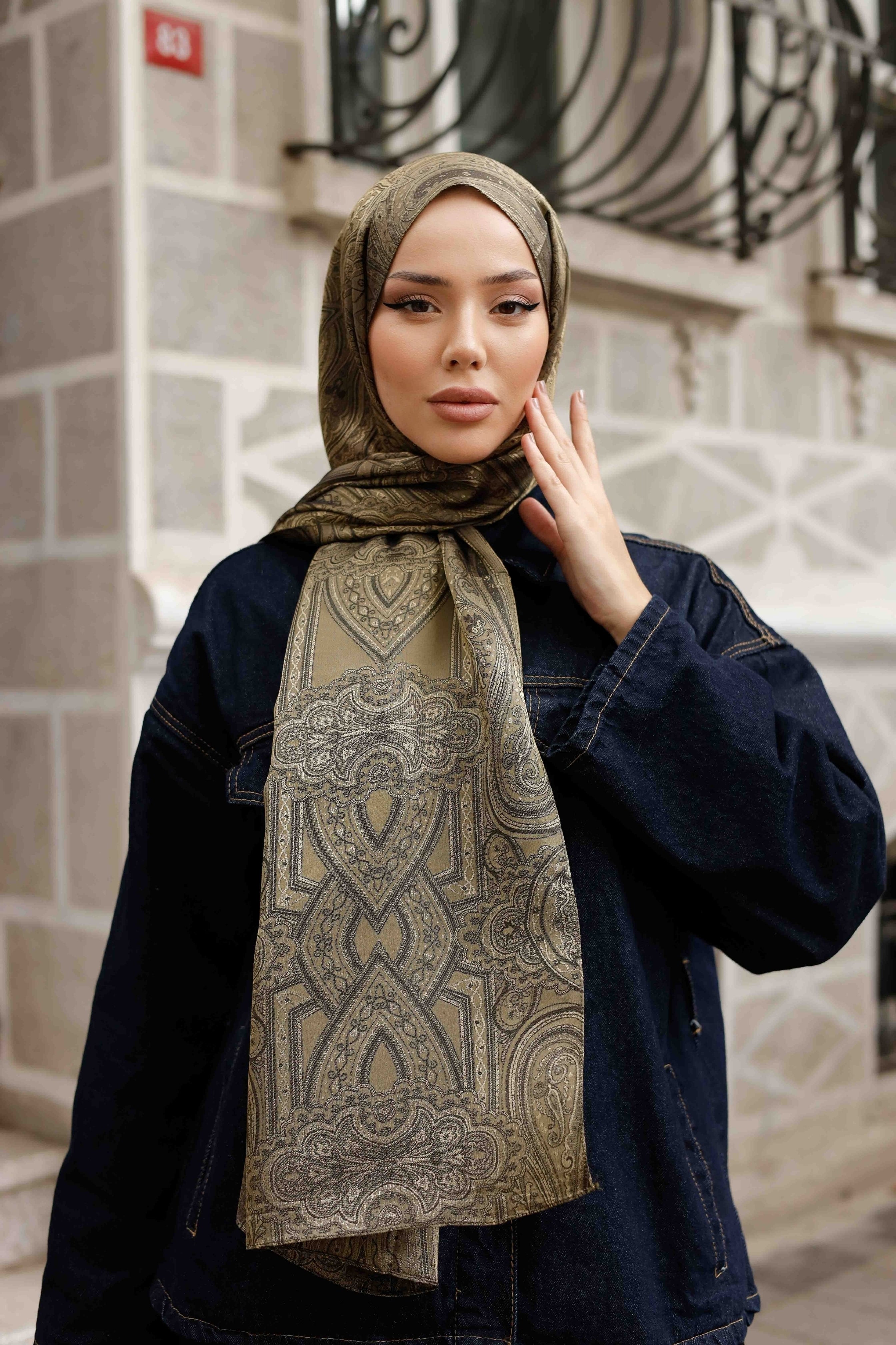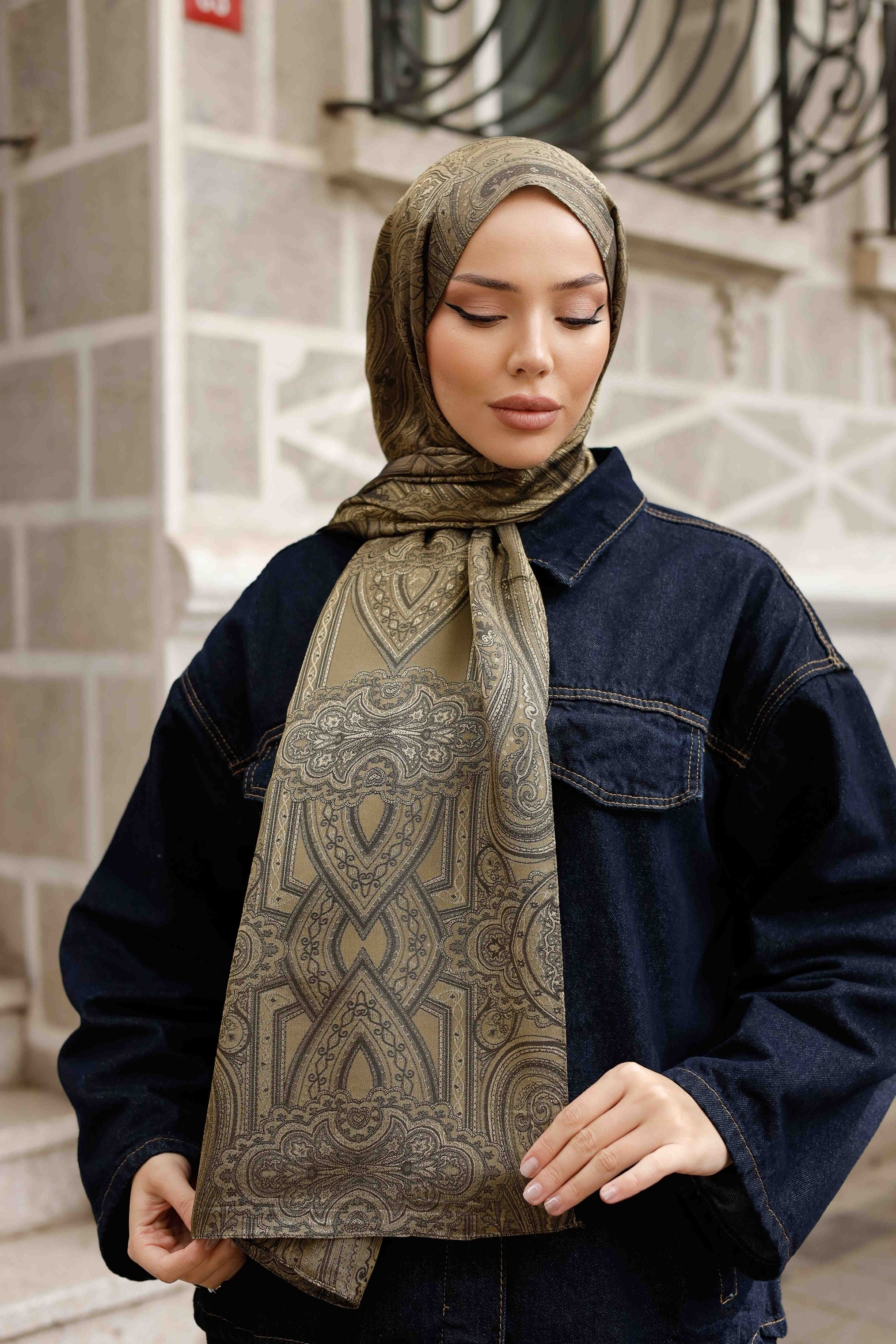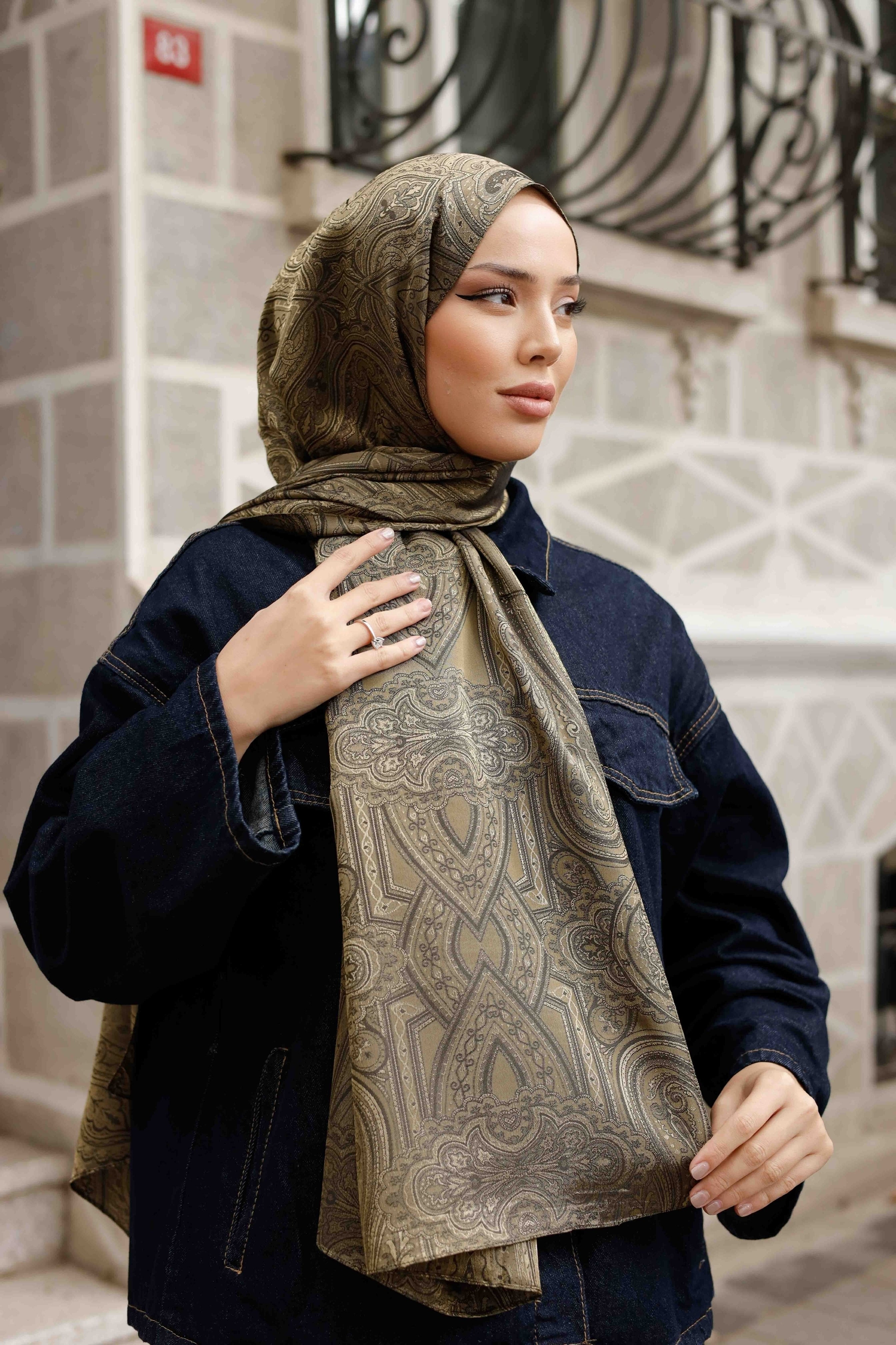 İpeksi Çift Taraflı Jakar Şal Hint Yağ Yeşili