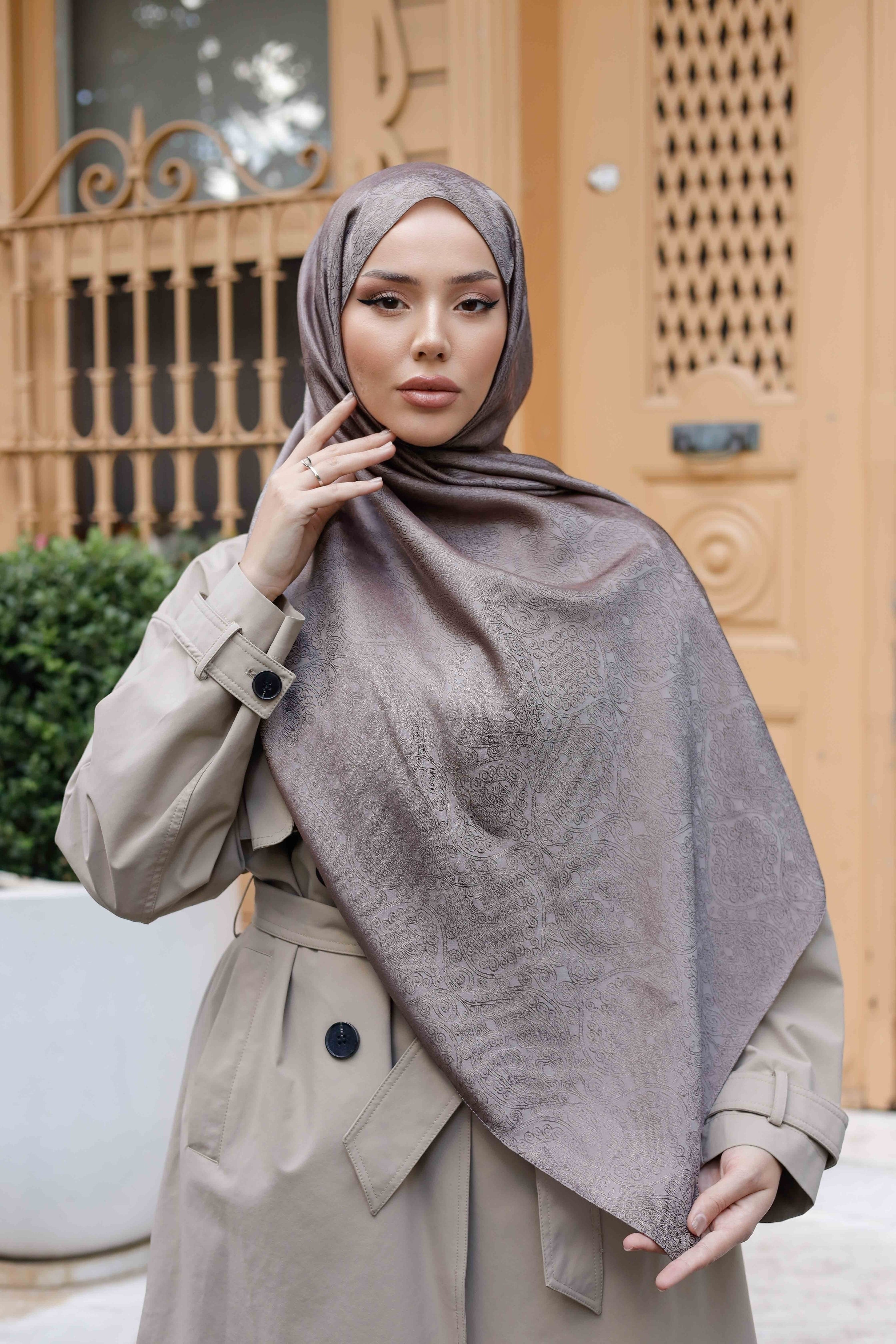 İpeksi Çift Taraflı Jakar Şal Mandala Vizon
