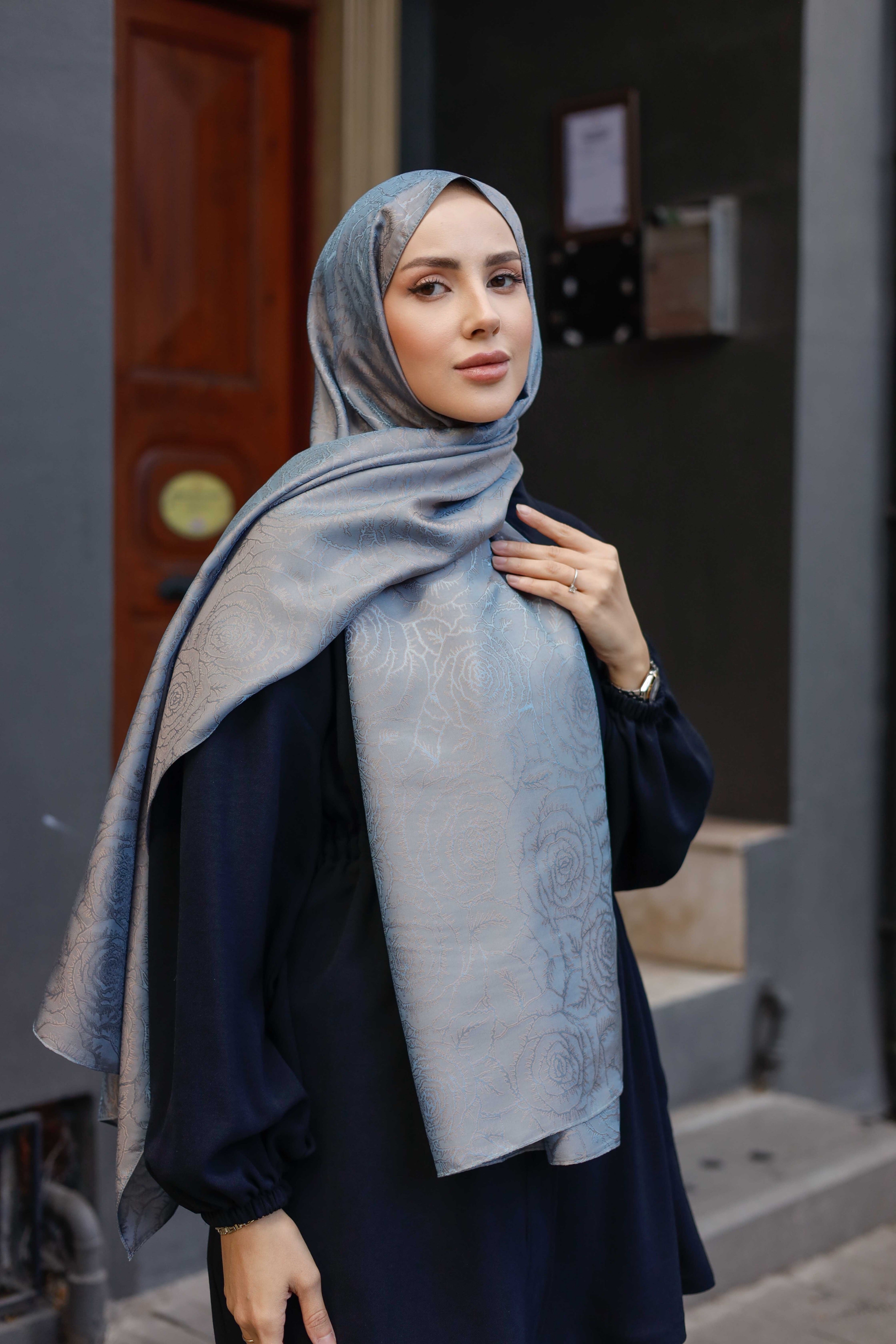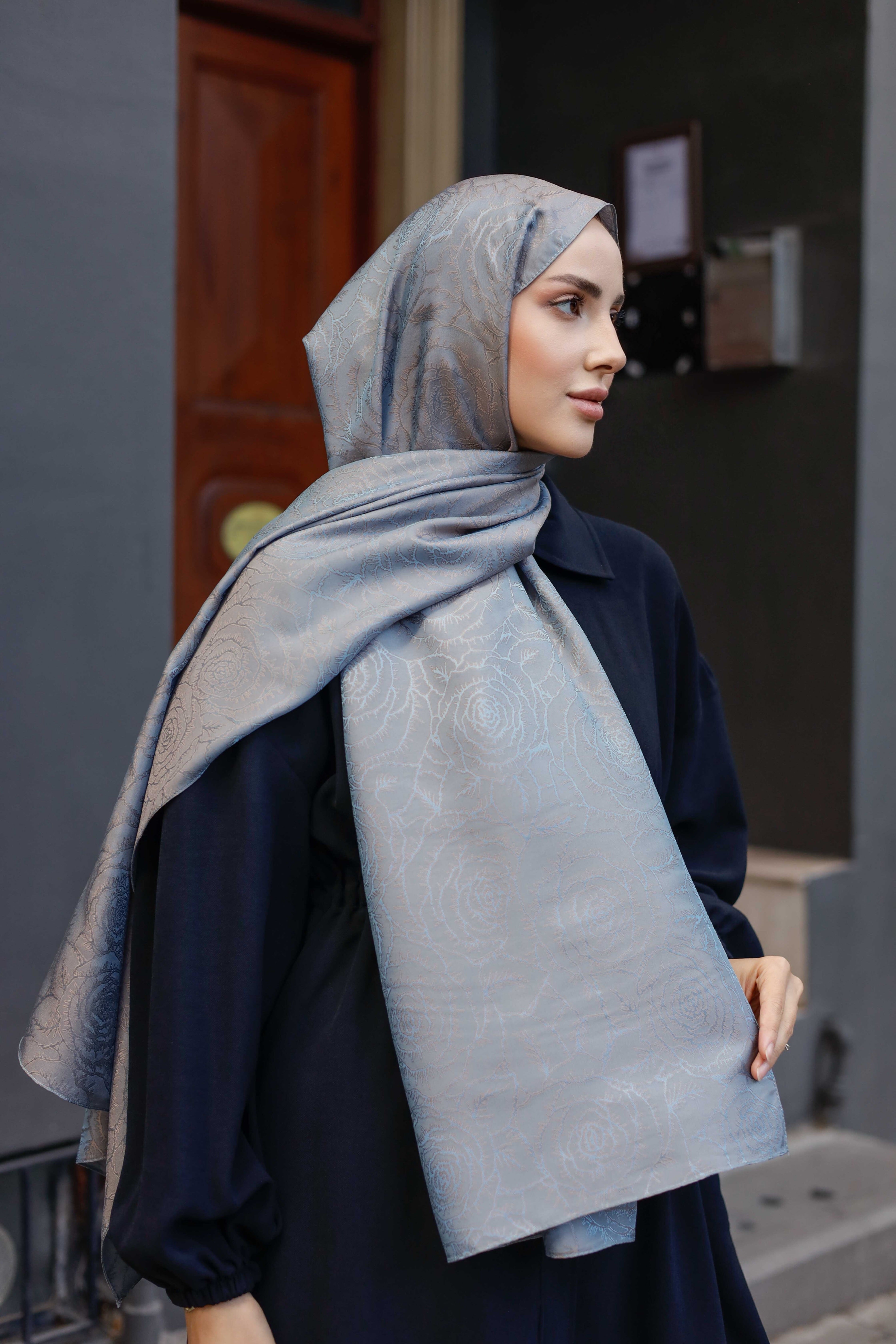İpeksi Çift Taraflı Jakar Şal Rose Duman Gri