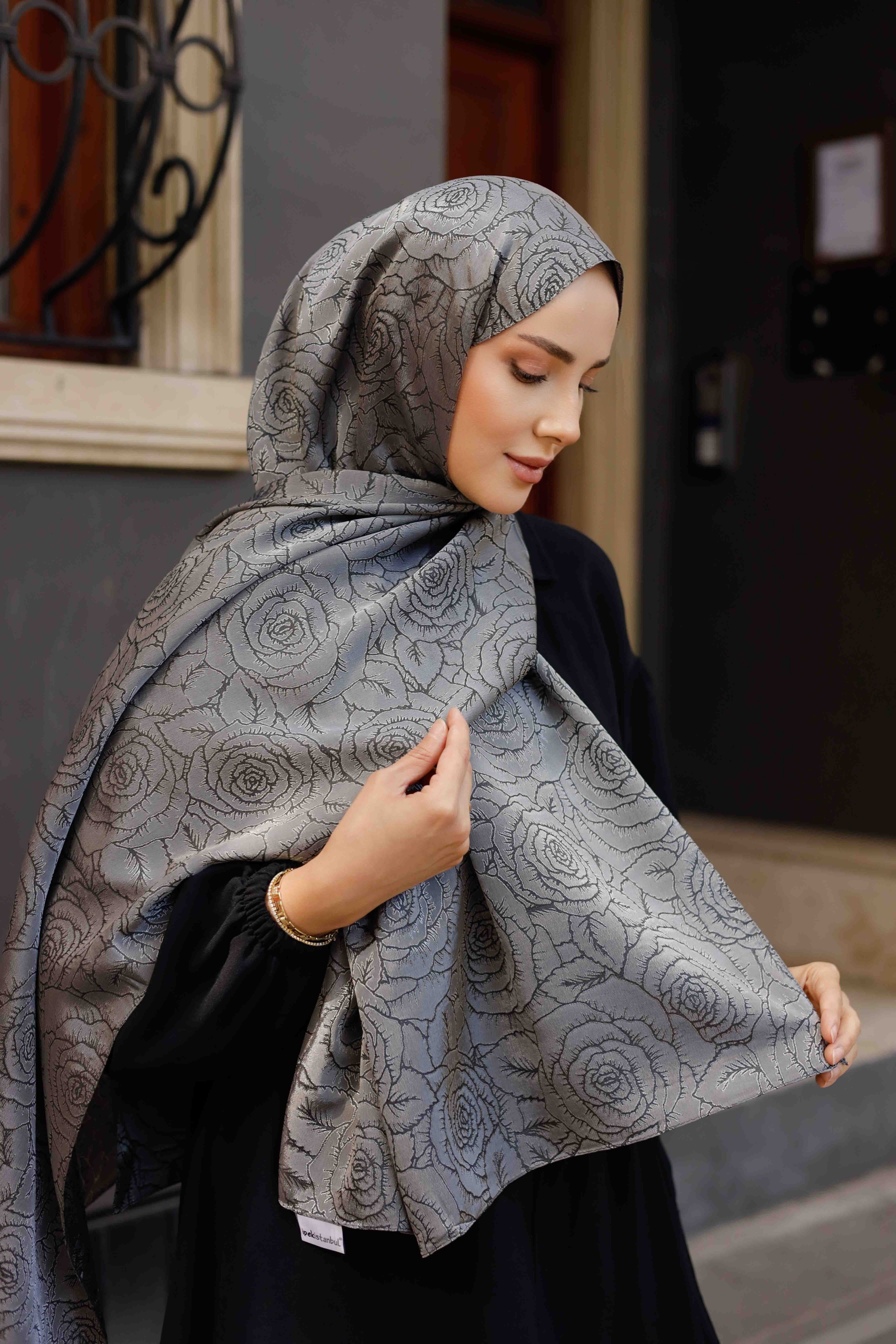 İpeksi Çift Taraflı Jakar Şal Rose Füme