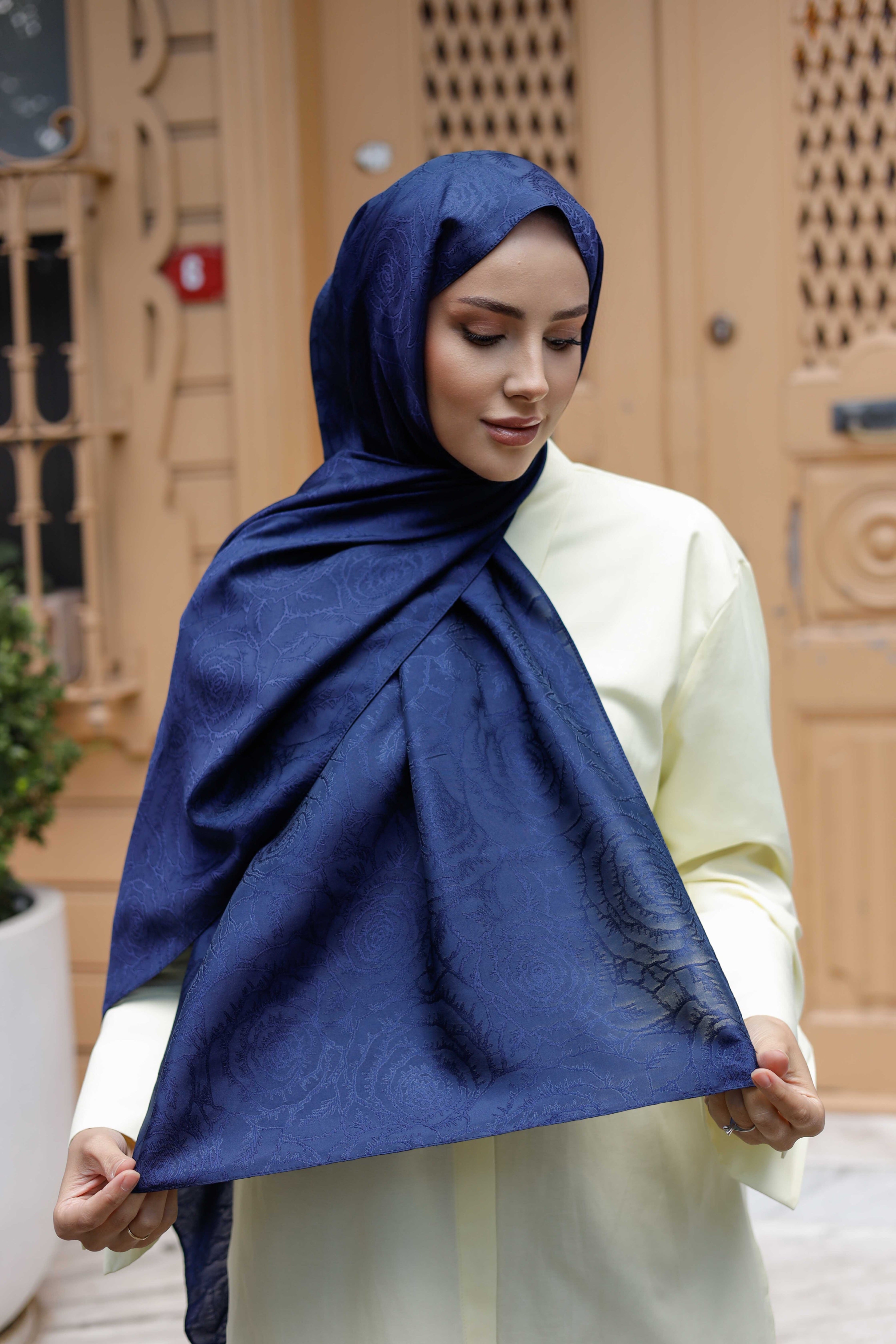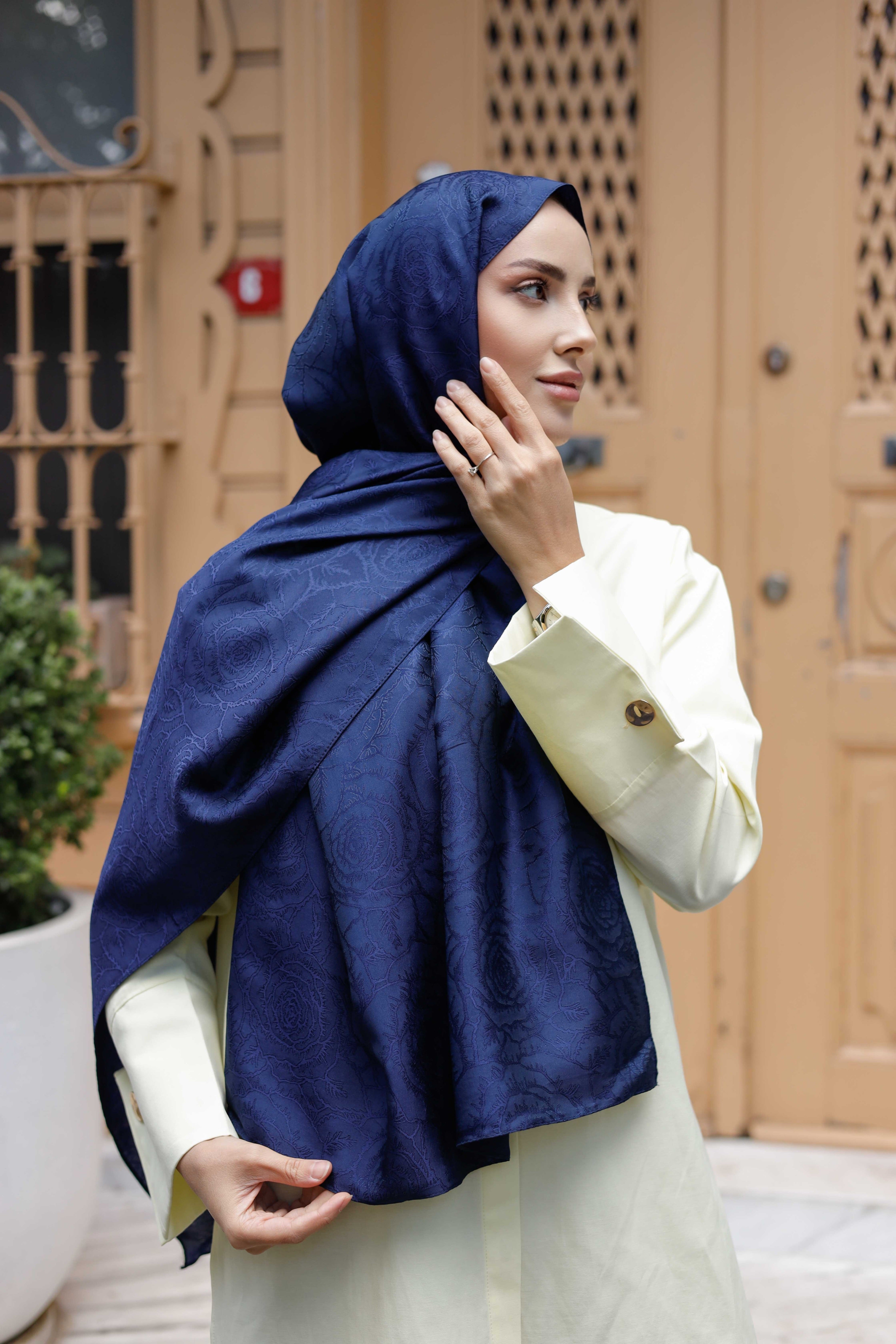 İpeksi Çift Taraflı Jakar Şal Rose Lacivert