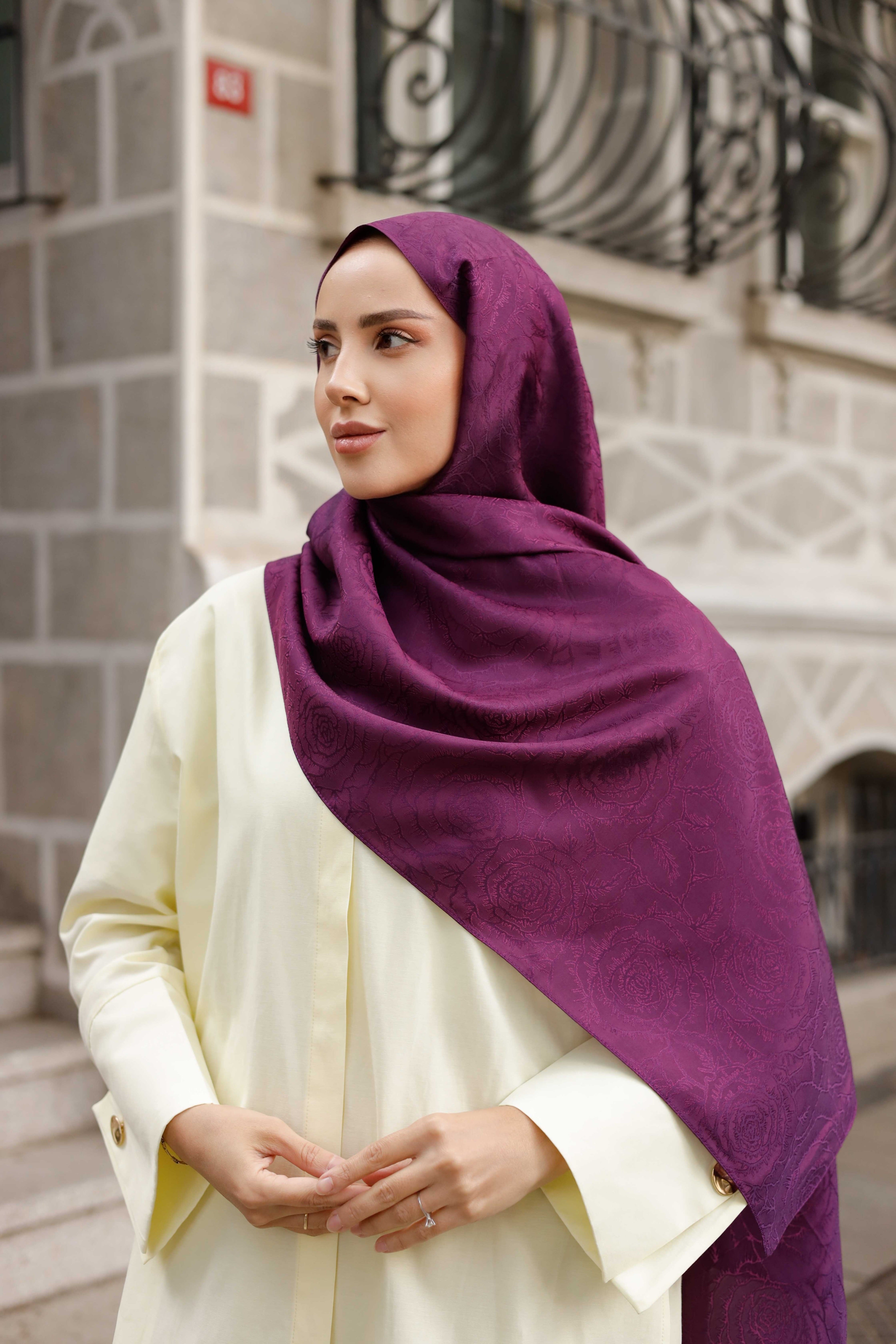 İpeksi Çift Taraflı Jakar Şal Rose Mürdüm