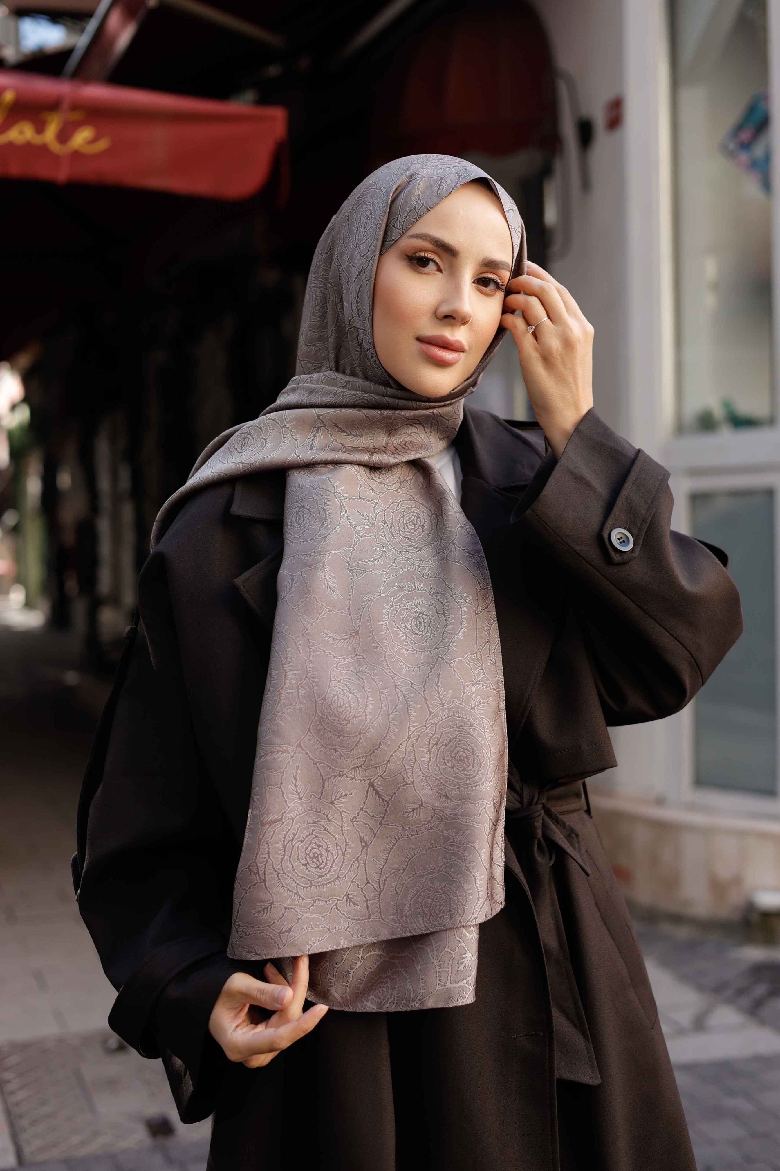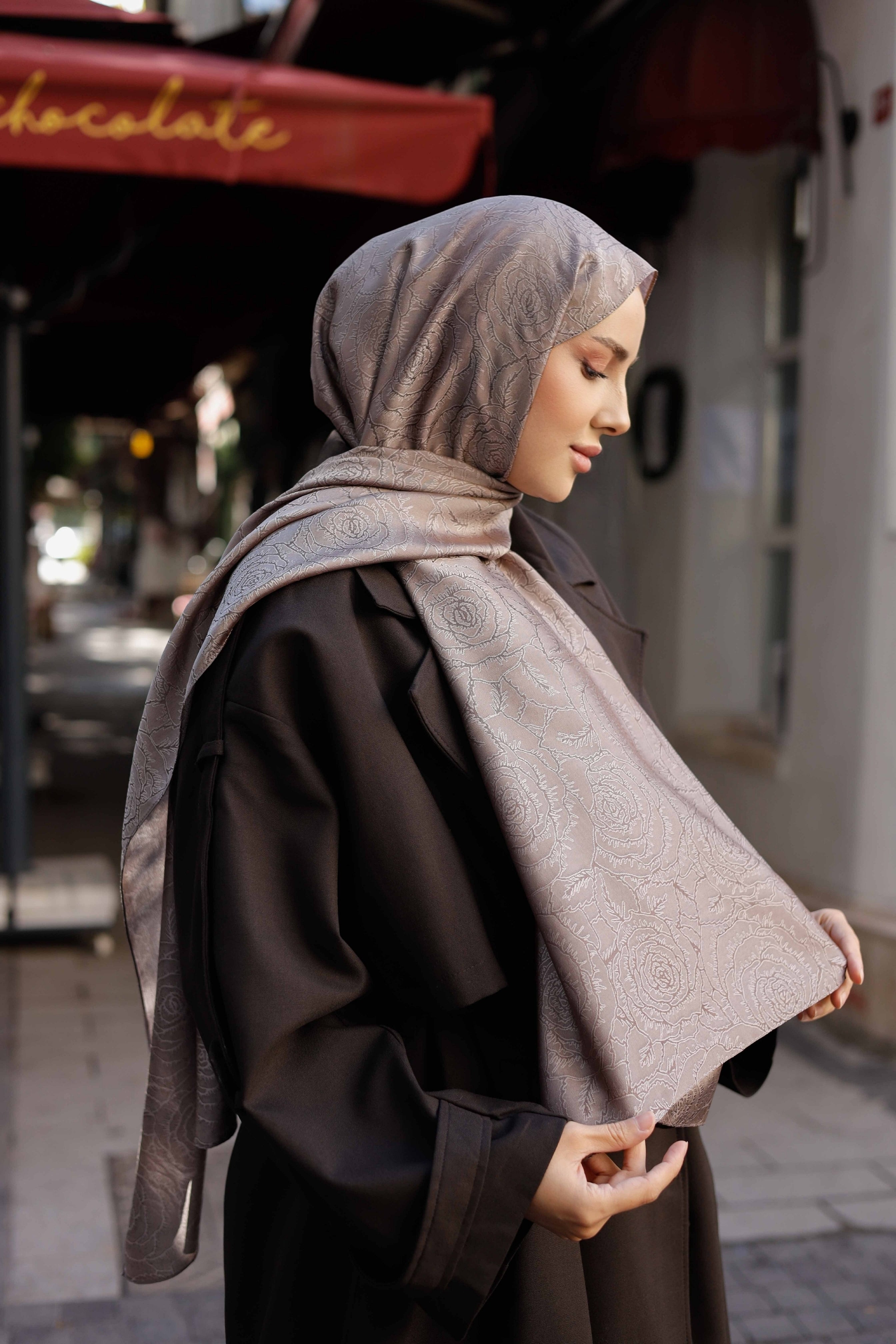İpeksi Çift Taraflı Jakar Şal Rose Vizon