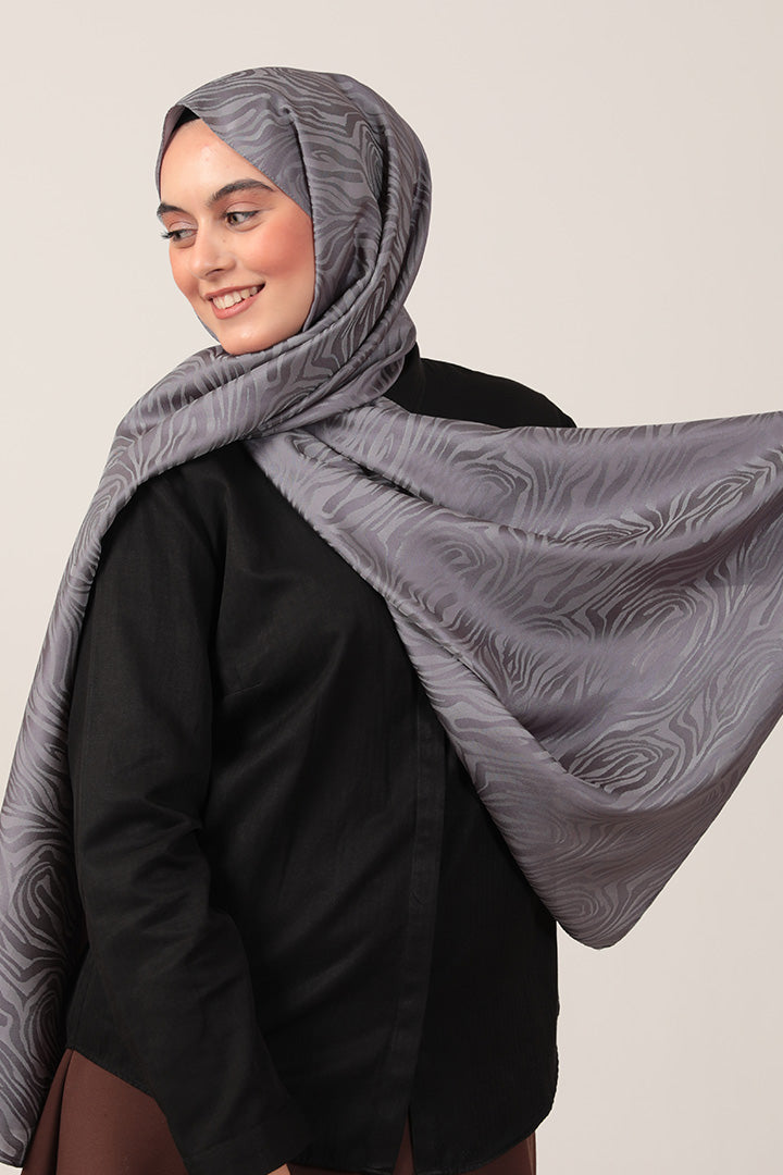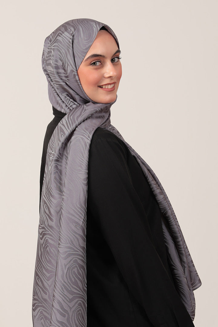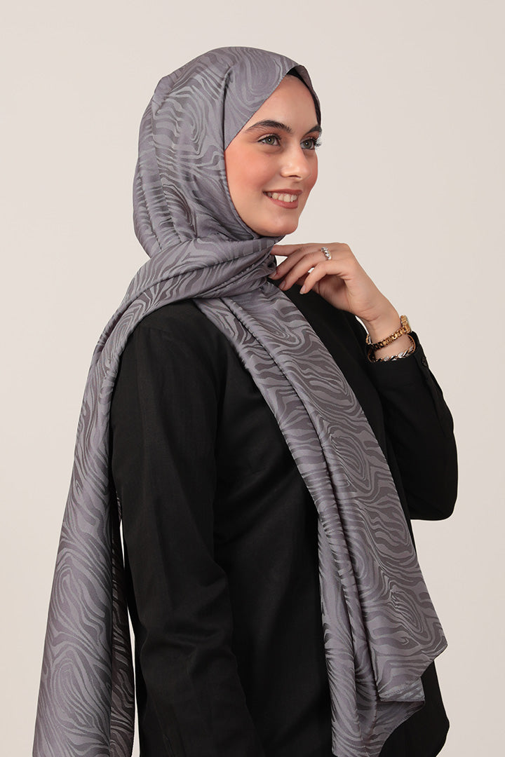 İpeksi Çift Taraflı Jakar Şal Zebra Antrasit Mavi