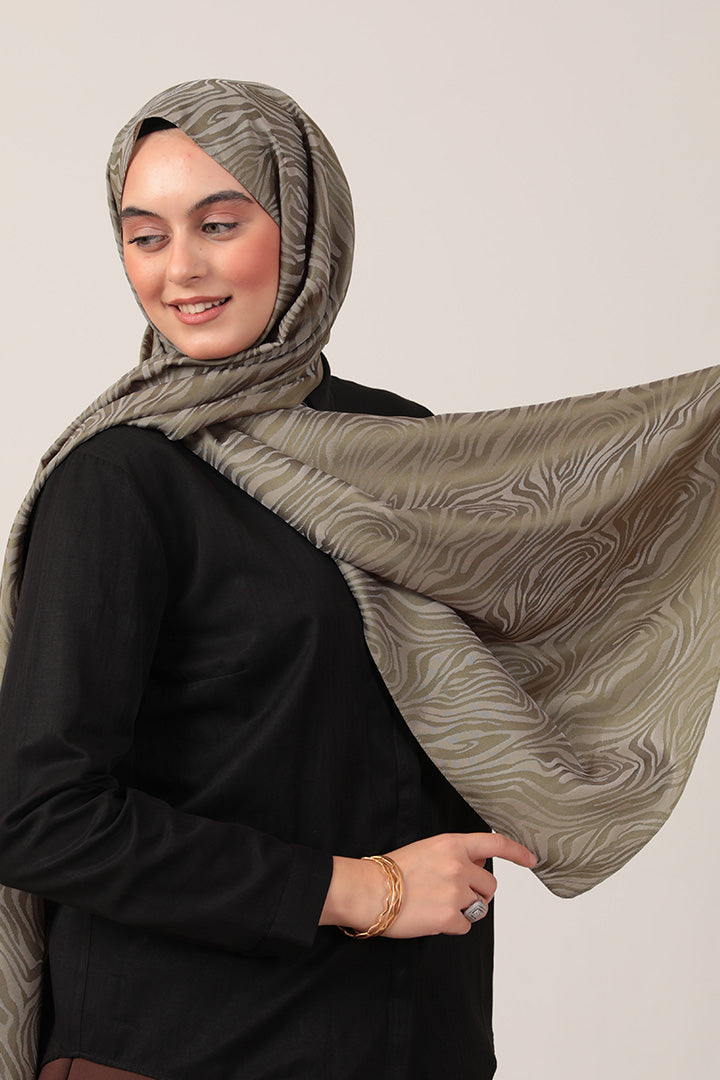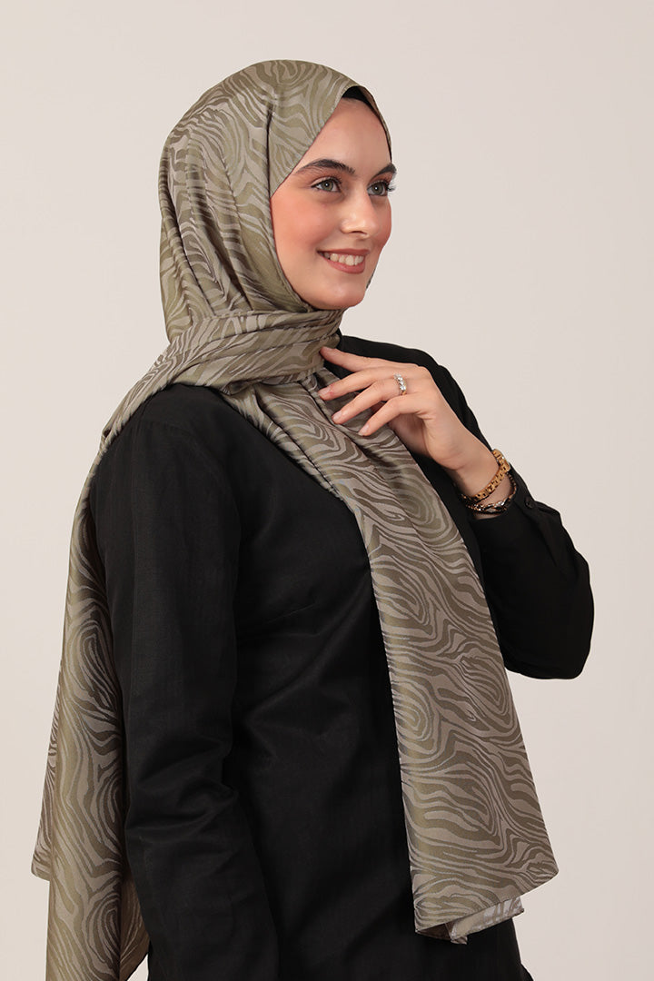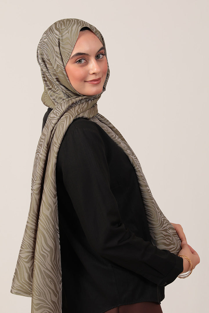 İpeksi Çift Taraflı Jakar Şal Zebra Çağla Yeşili