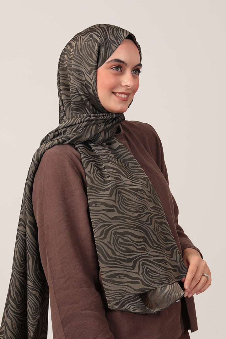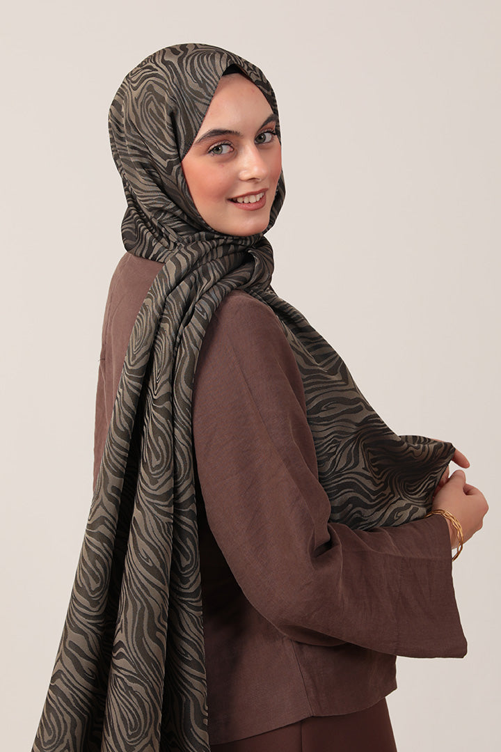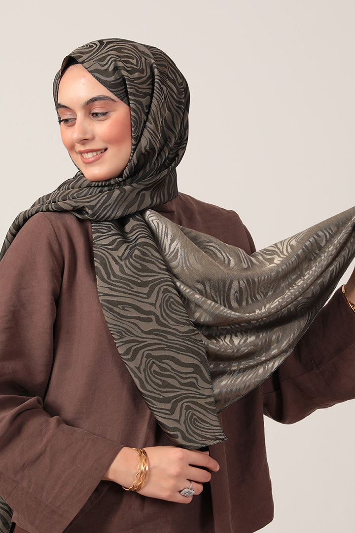 İpeksi Çift Taraflı Jakar Şal Zebra Haki Yeşili