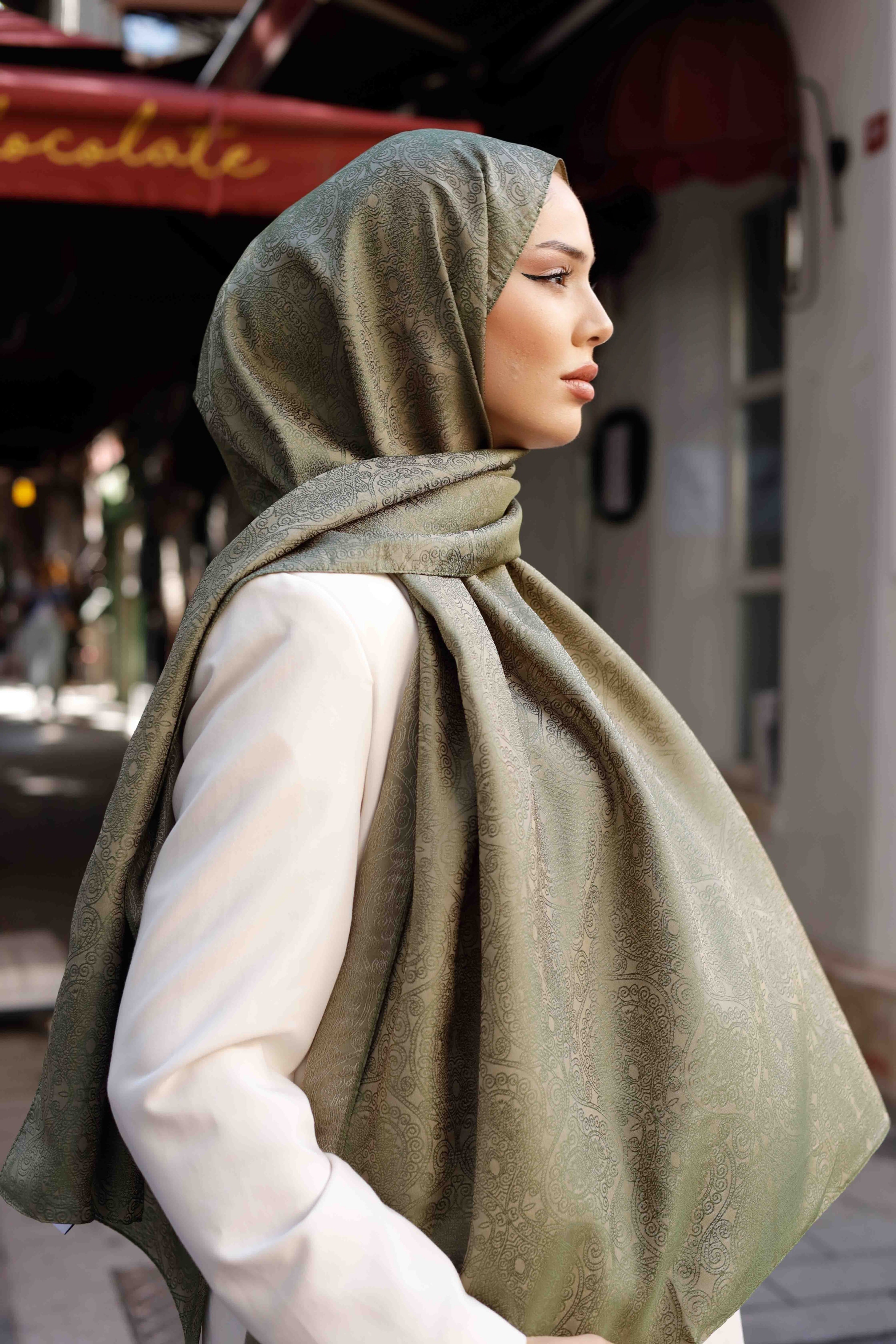 İpeksi Çift Taraflı Jakar Şal Mandala Çağla Yeşili