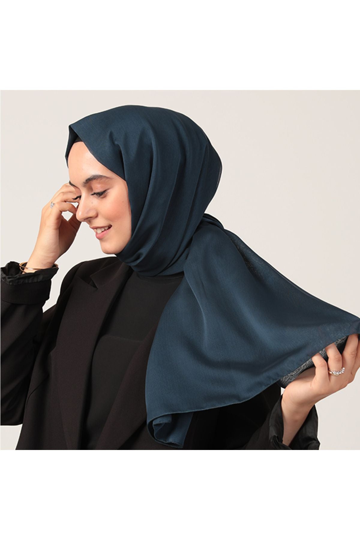 Koyu Lacivert Çift Katlı Janjanlı Şifon Şal