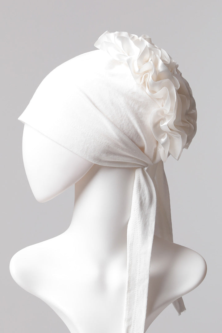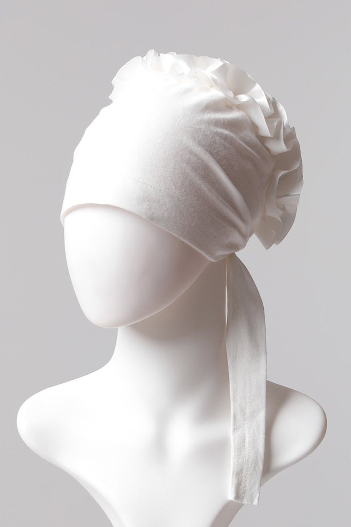 Özel Üretim Geniş Kalıp Ekru Kurdele Topuzlu Bone