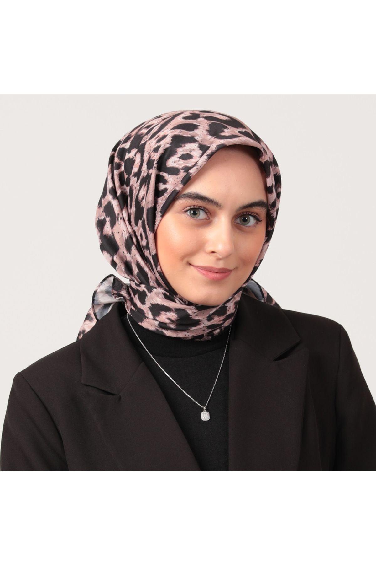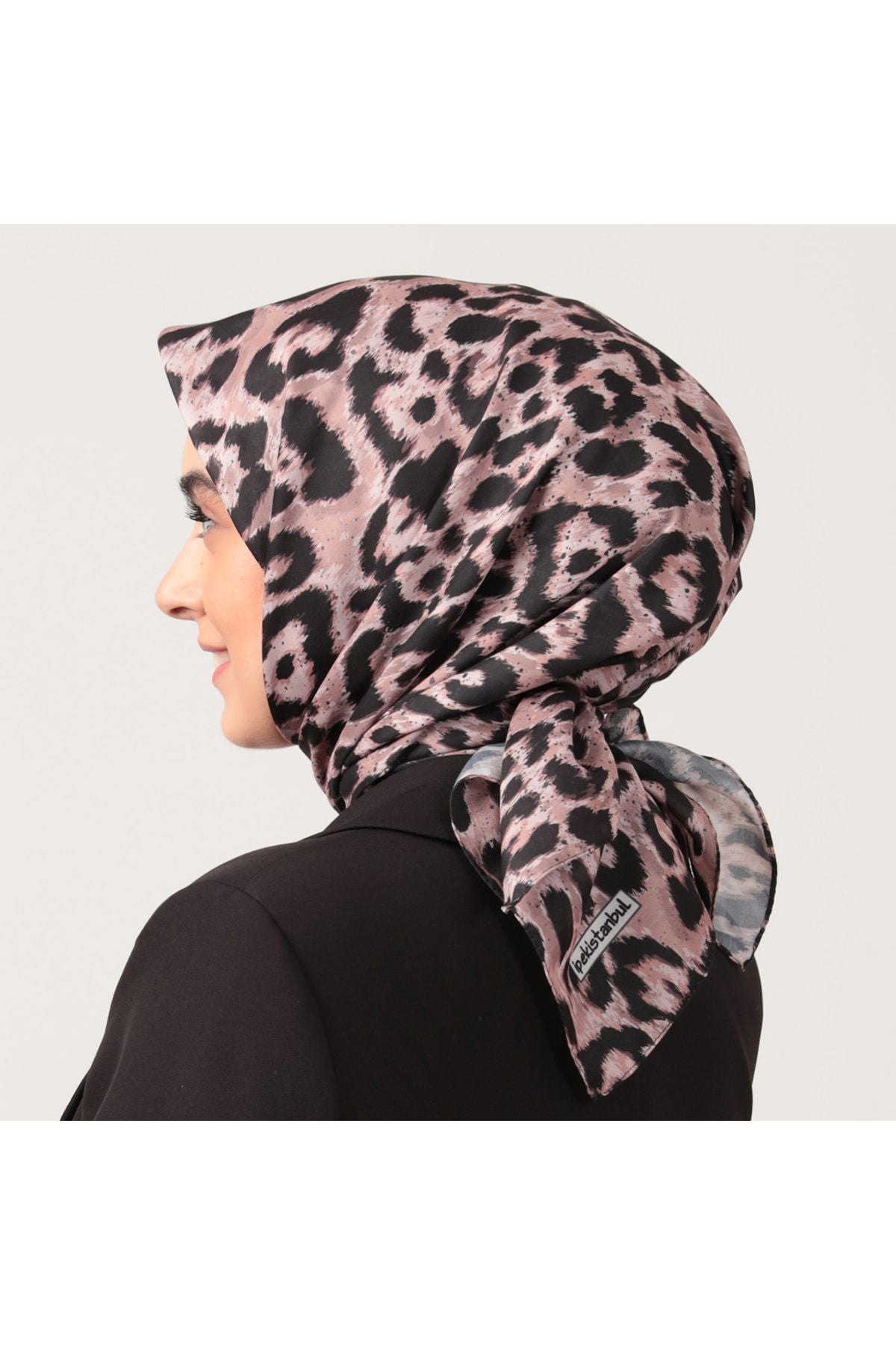 • Pamuk İpek Eşarp - Büyük Leopar Desen - Gül Kurusu