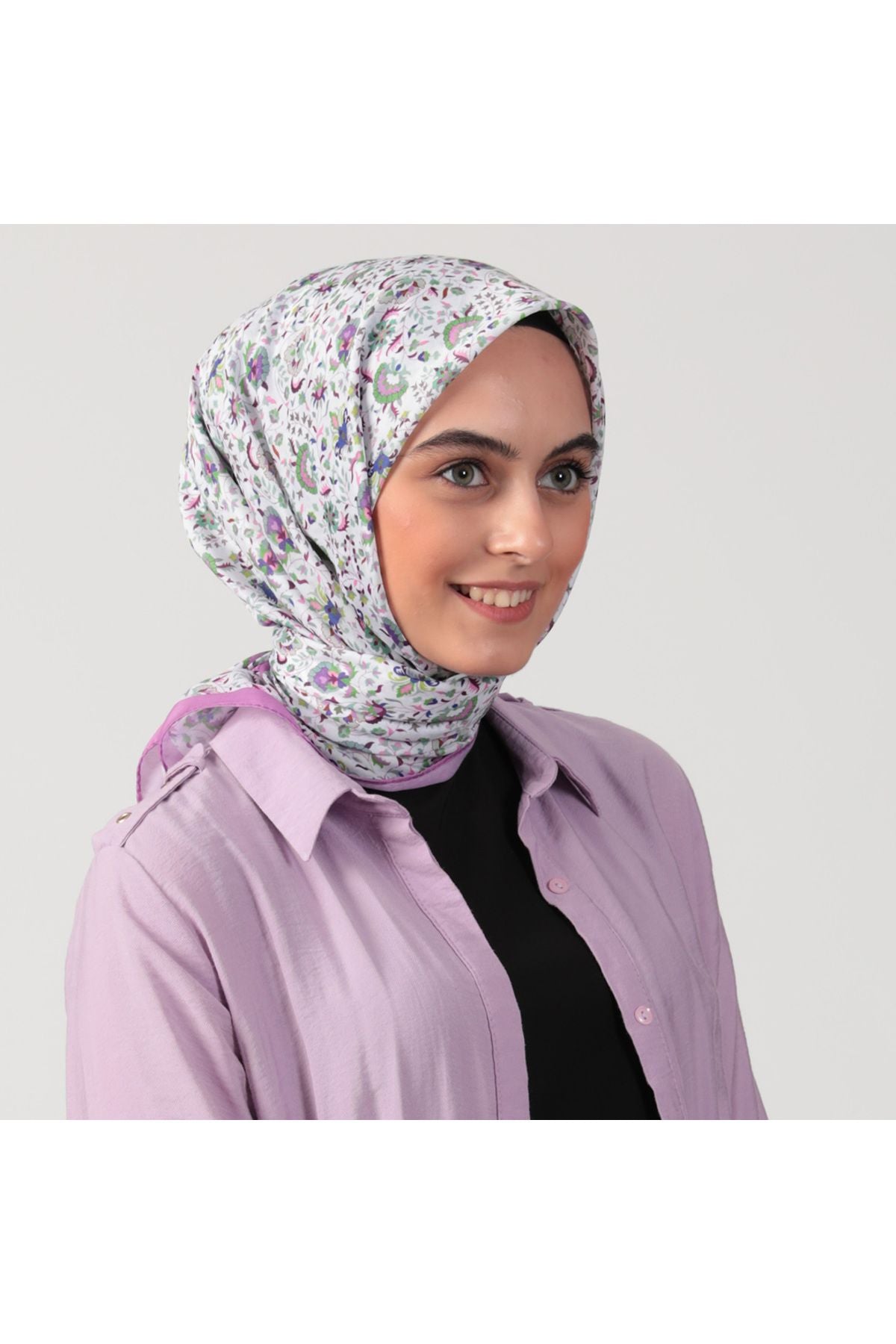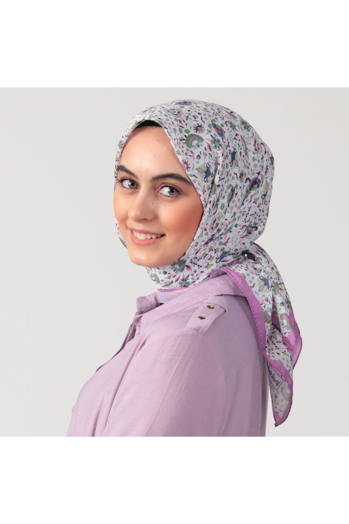 • Pamuk İpek Eşarp - Çini Desen - Lila