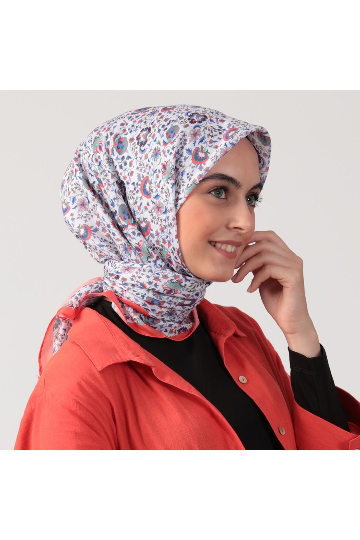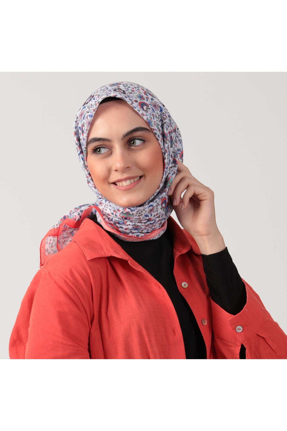 • Pamuk İpek Eşarp - Çini Desen - Oranj