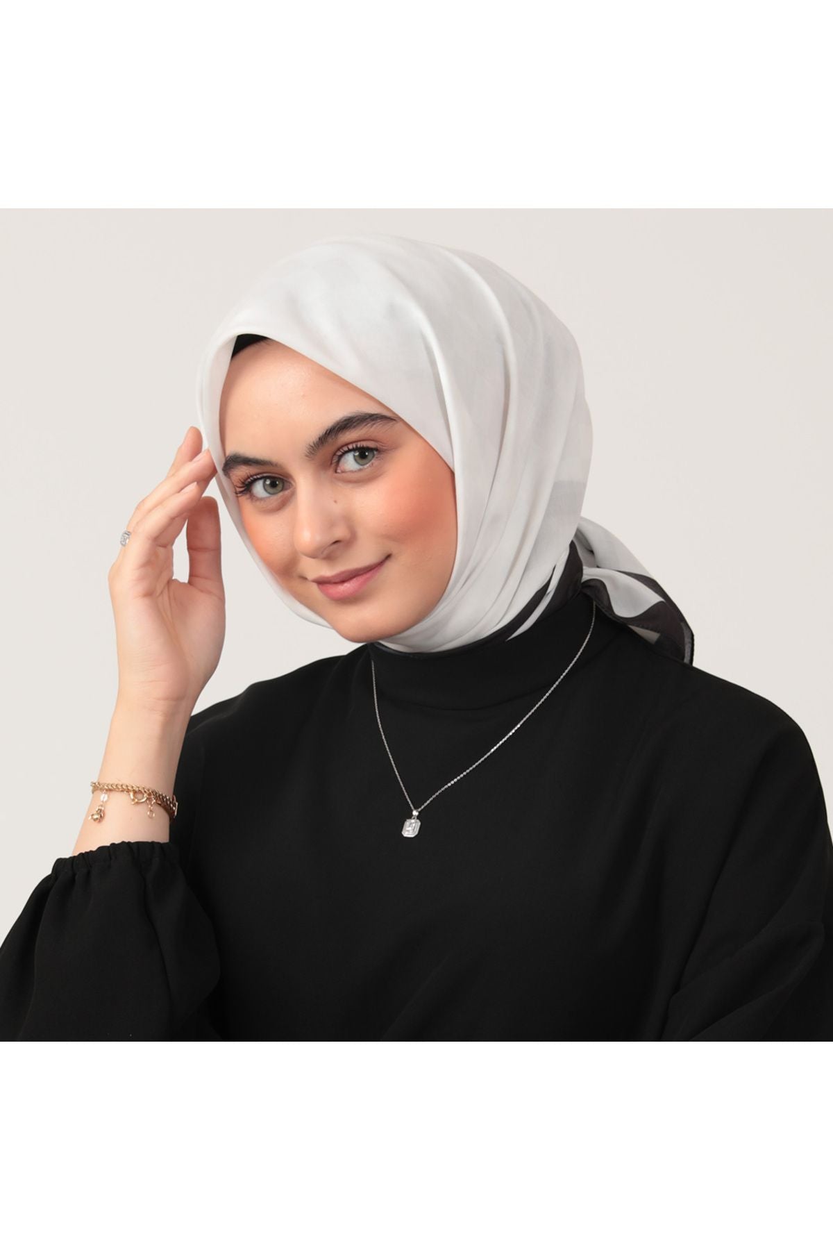 • Pamuk İpek Eşarp - Dama Desen - Beyaz