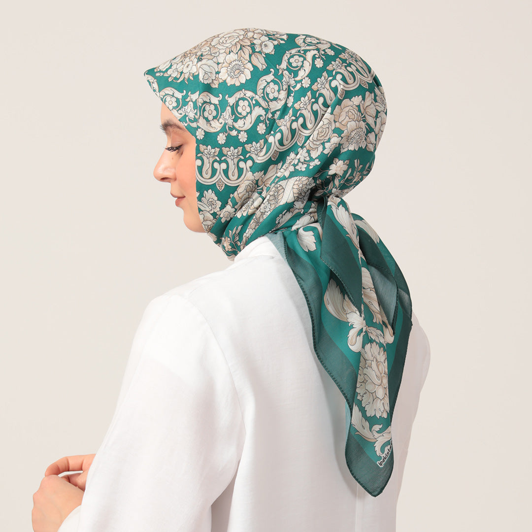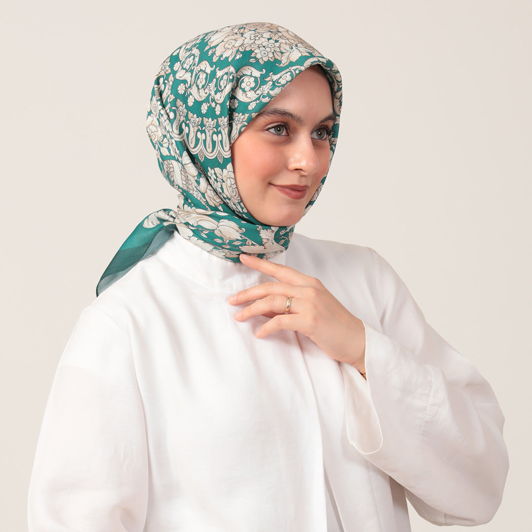 PAMUK İPEK EŞARP - DÖNENCE DESEN - ZÜMRÜT YEŞİLİ