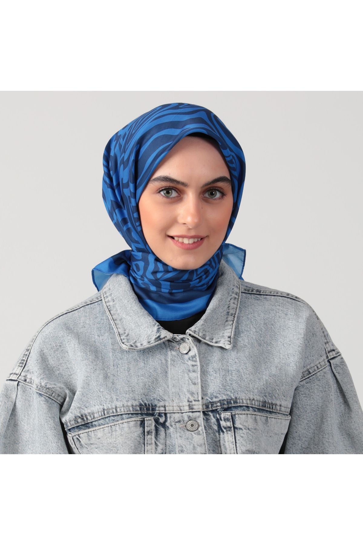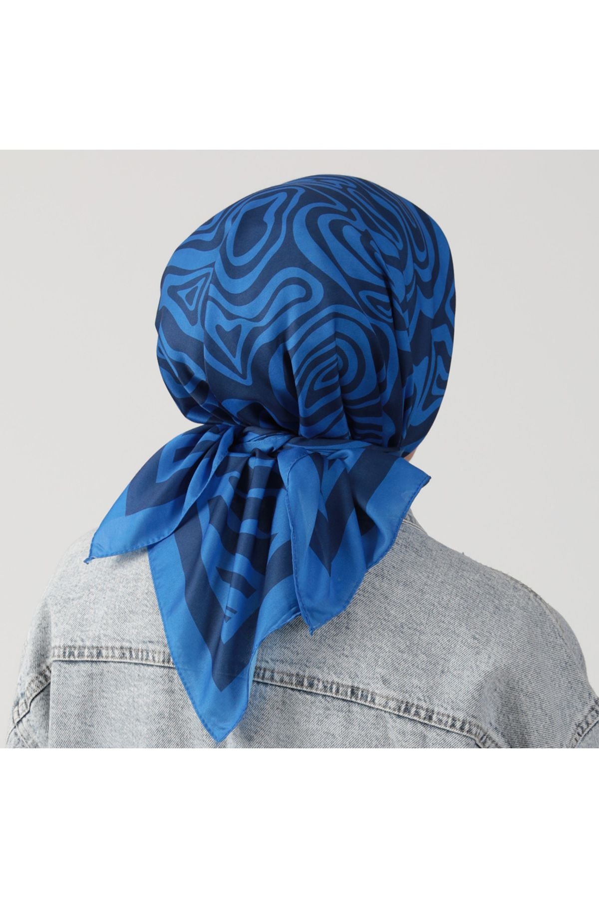PAMUK İPEK EŞARP - HELEZON DESEN - İNDİGO