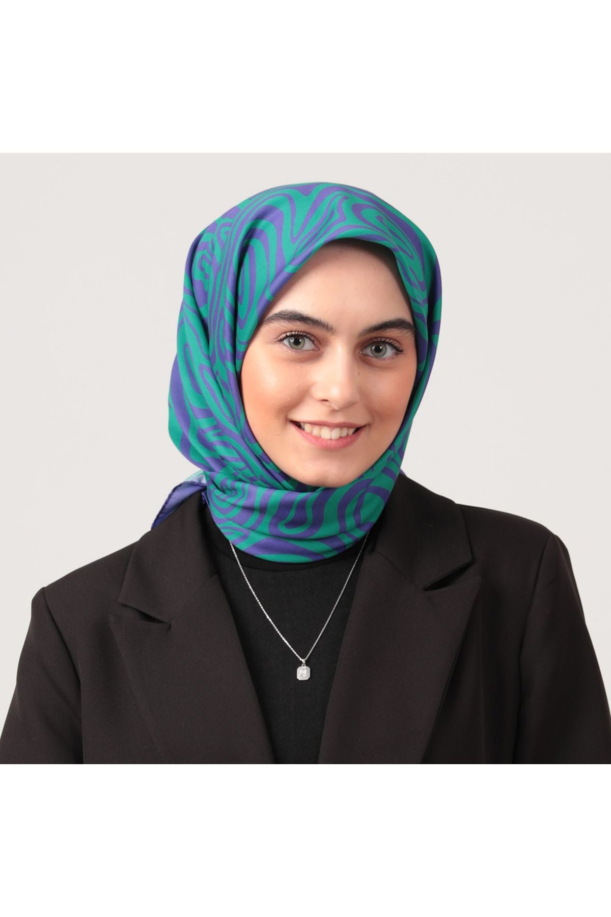 • Pamuk İpek Eşarp - Helezon Desen - Yeşil