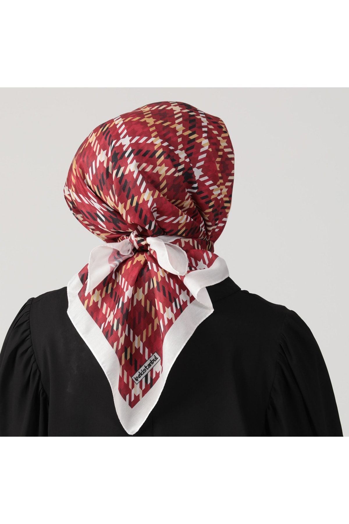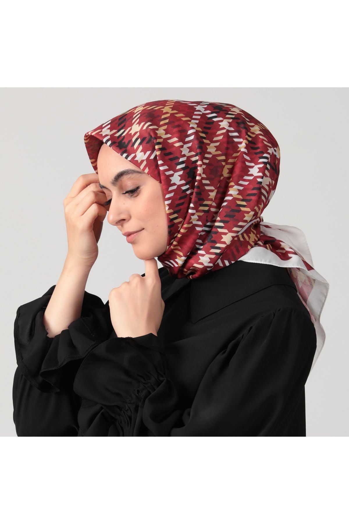 • Pamuk İpek Eşarp - Kazayağı Desen - Bordo