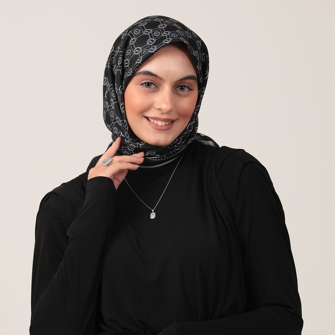 PAMUK İPEK EŞARP - MONOGRAM DESEN - SİYAH GRİ