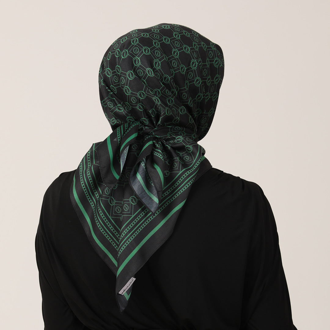 PAMUK İPEK EŞARP - MONOGRAM DESEN - SİYAH YEŞİL