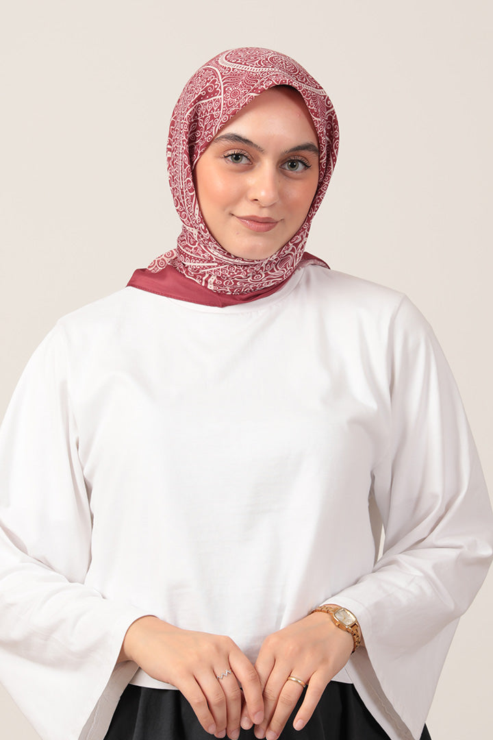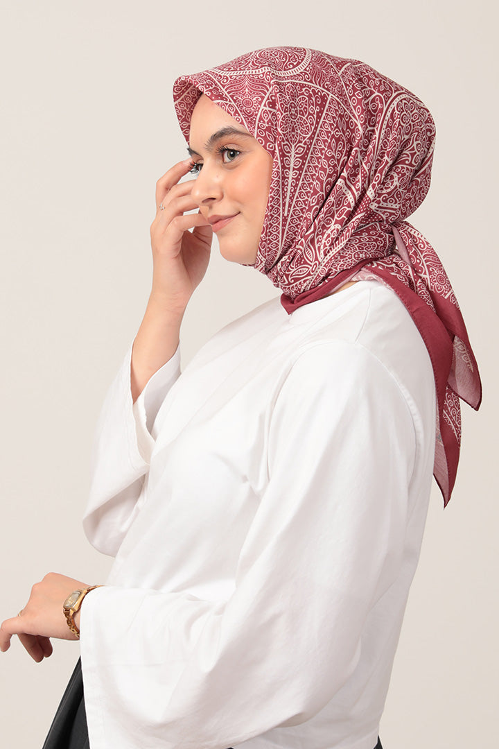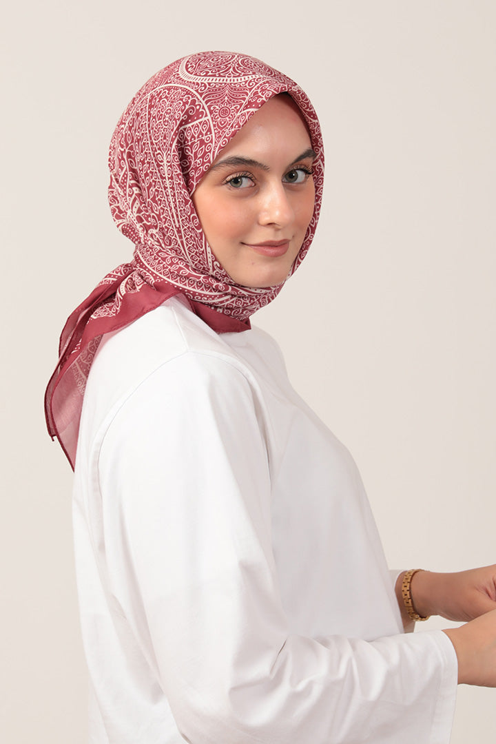Pamuk İpek Eşarp - Sarmaşık Desen - Bordo