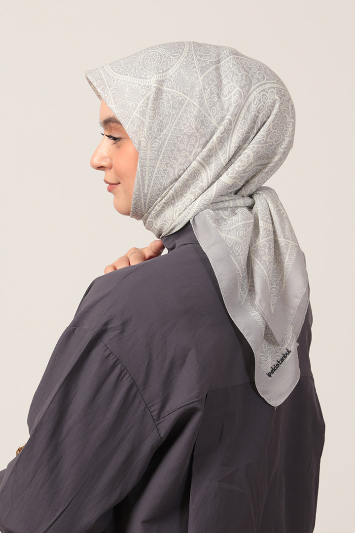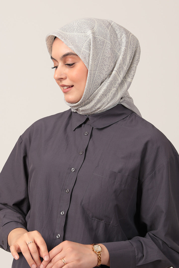 Pamuk İpek Eşarp Sarmaşık Desen Buz Beyazı