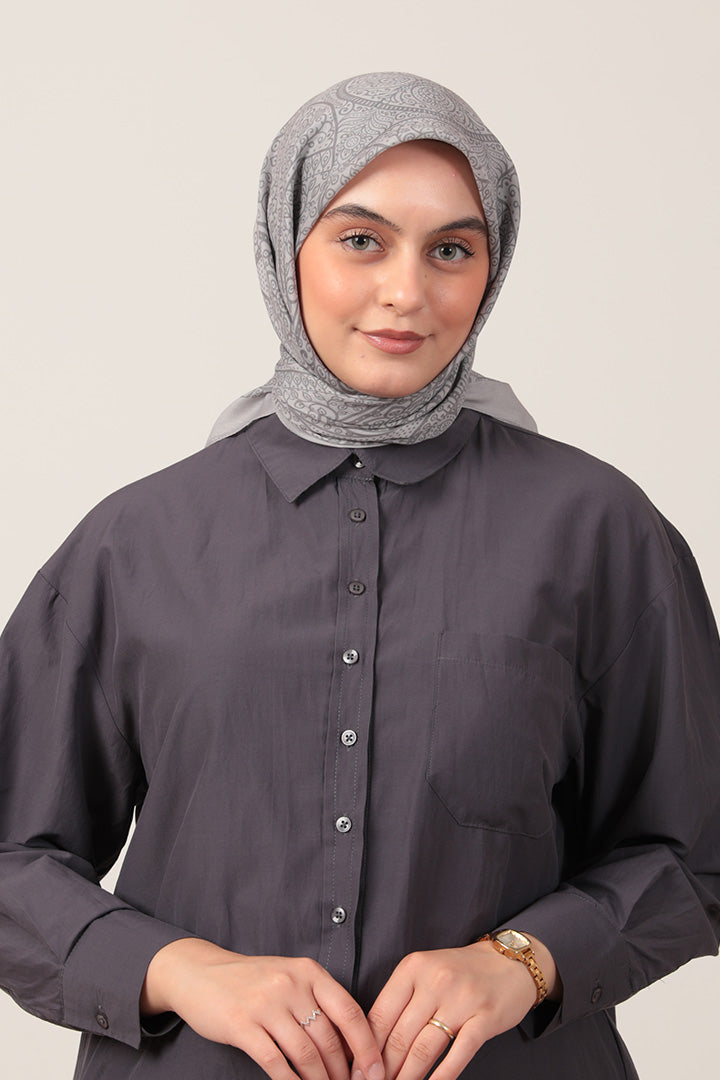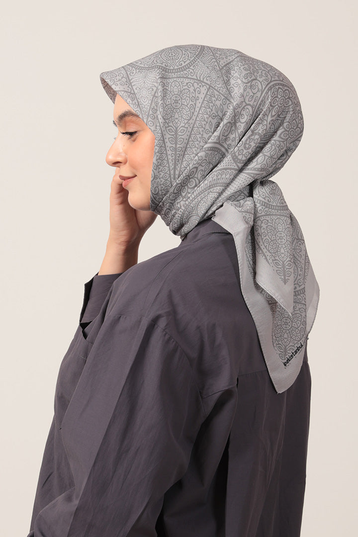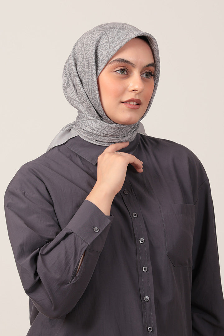 Pamuk İpek Eşarp Sarmaşık Desen Gri