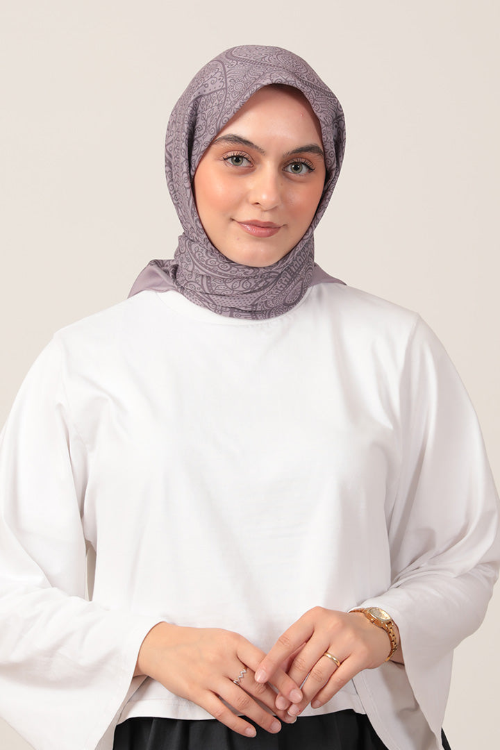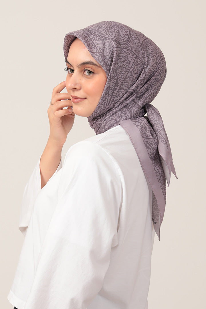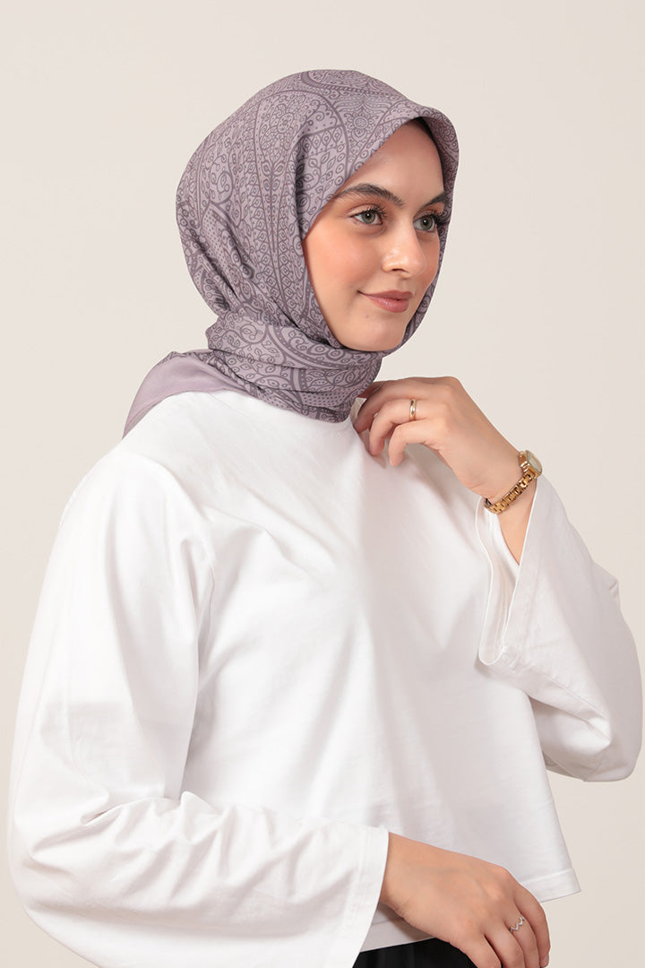 Pamuk İpek Eşarp Sarmaşık Desen Koyu Lila